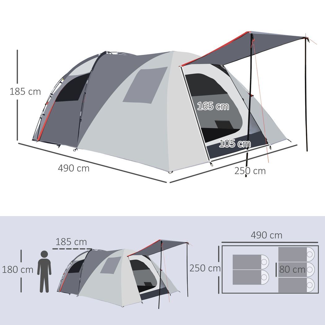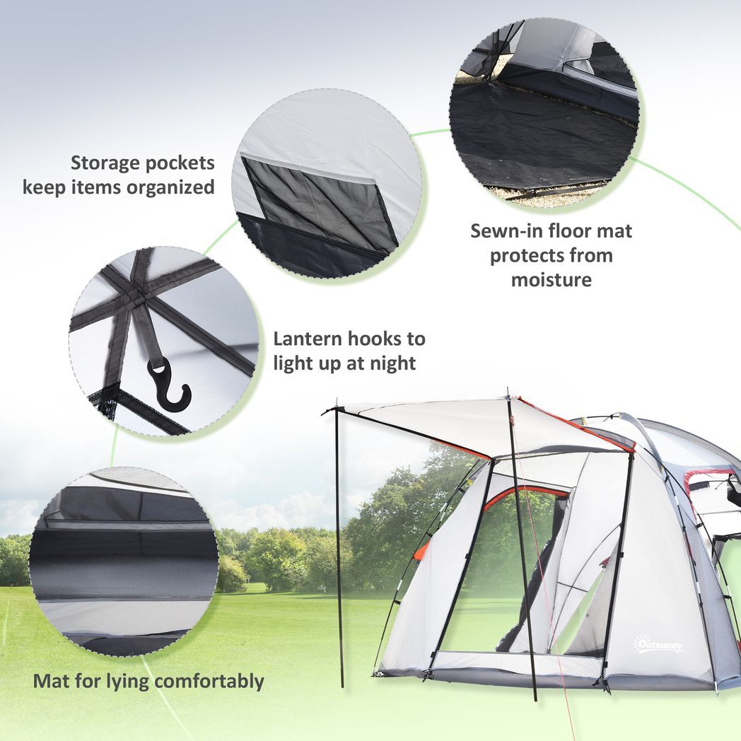 4-5 Man Outdoor Tunnel Tent, Two Room Camping Tent w/ Portable Mat