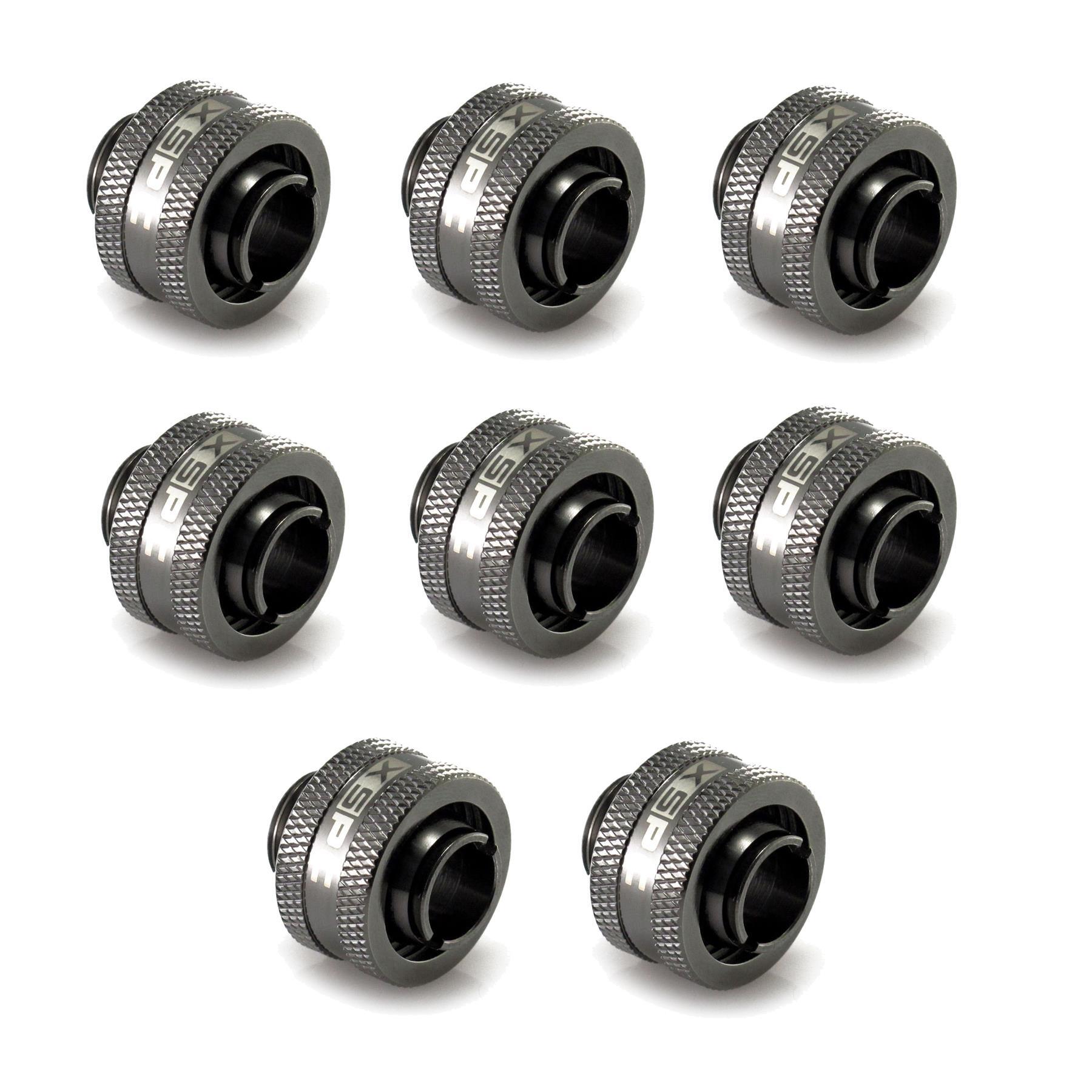 XSPC G1/4 to 7/16 ID 5/8 OD Compression Fitting V2 - Black Chrome (8 Pack)