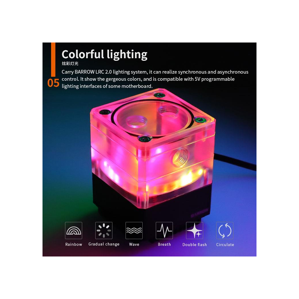 1x Barrow SPB17-TM 960LPH 17W PWM Mini Pump Reservoir with LRC 2.0 RGB - Black