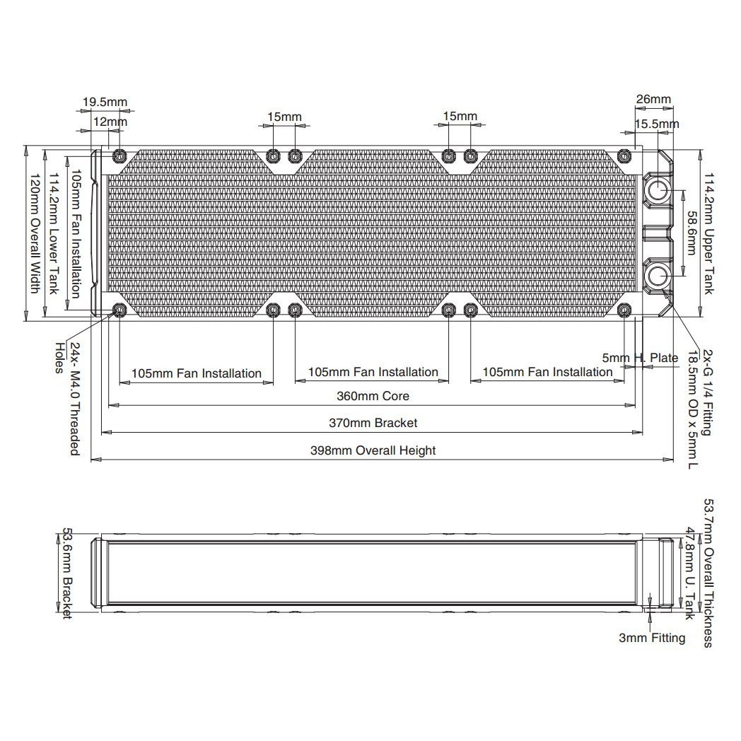 120 mm x 3 fan Xtreme form factor two-pass radiator