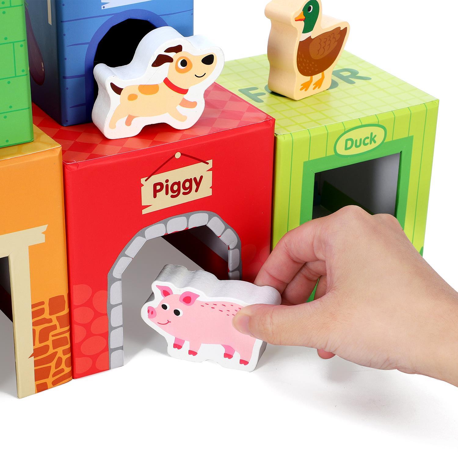 SOKA 12 Pcs Cardboard Farm Animals Stacking Cubes Educational Toy For Children