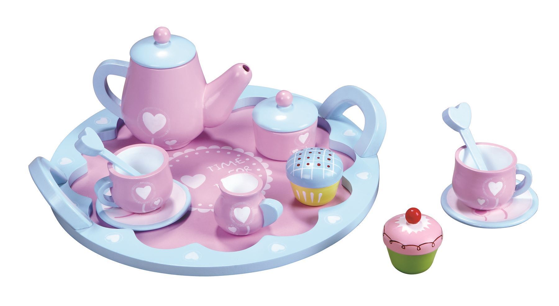 Lelin 13 PCS Wooden Heart Shaped Tea Set Pretend Play Role Play Toy for Children