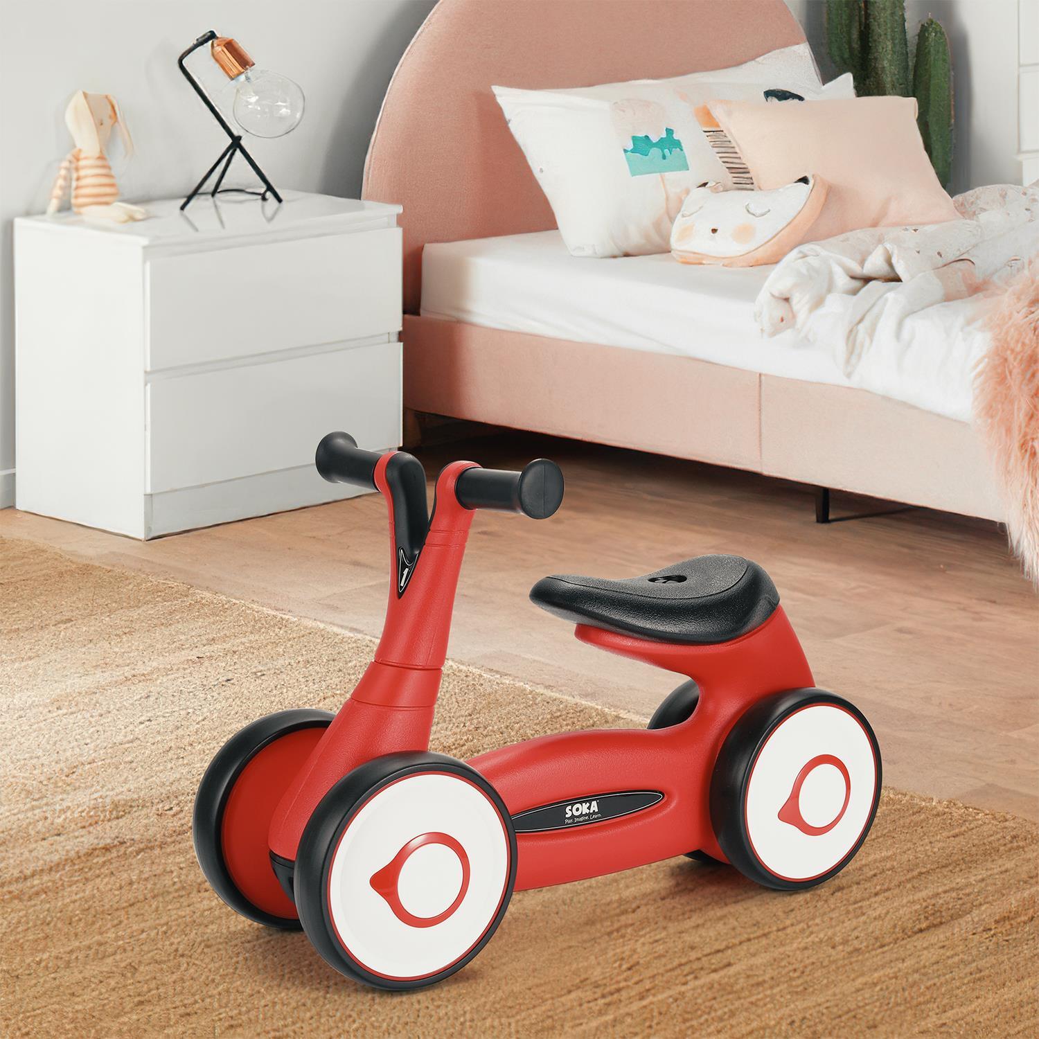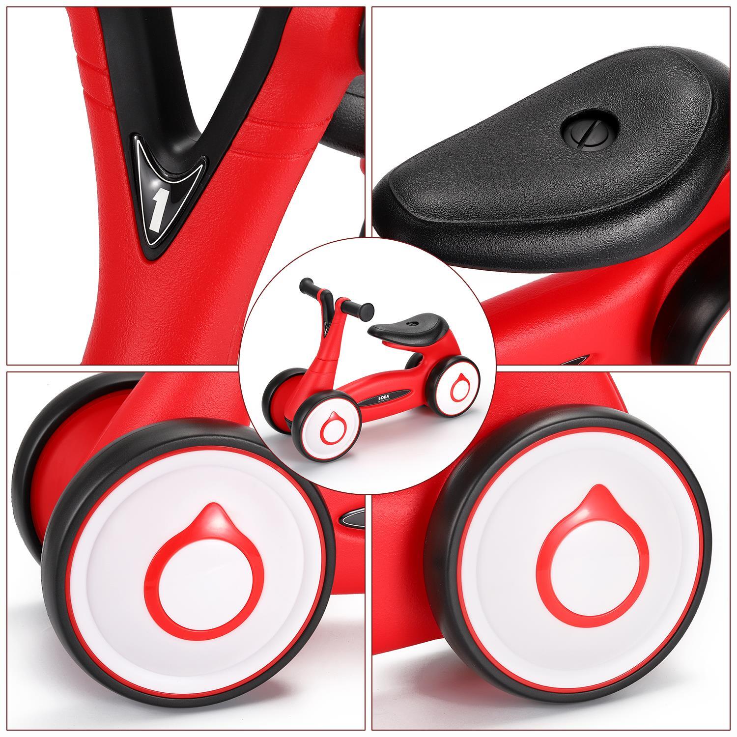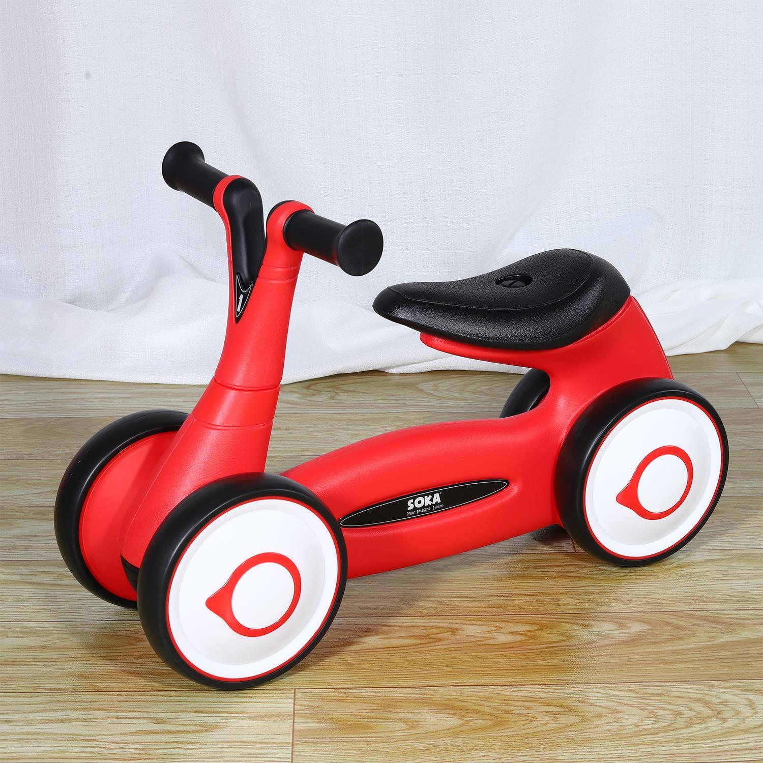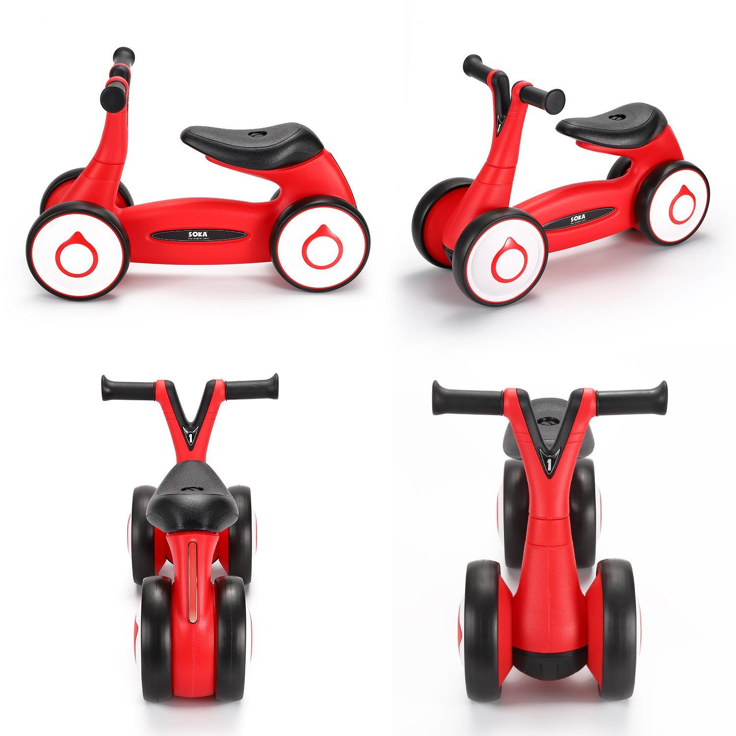 SOKA Balance Bike Toddler 4 Wheel Ride-on Bicycle Baby Balance Training Bike Toy - Red