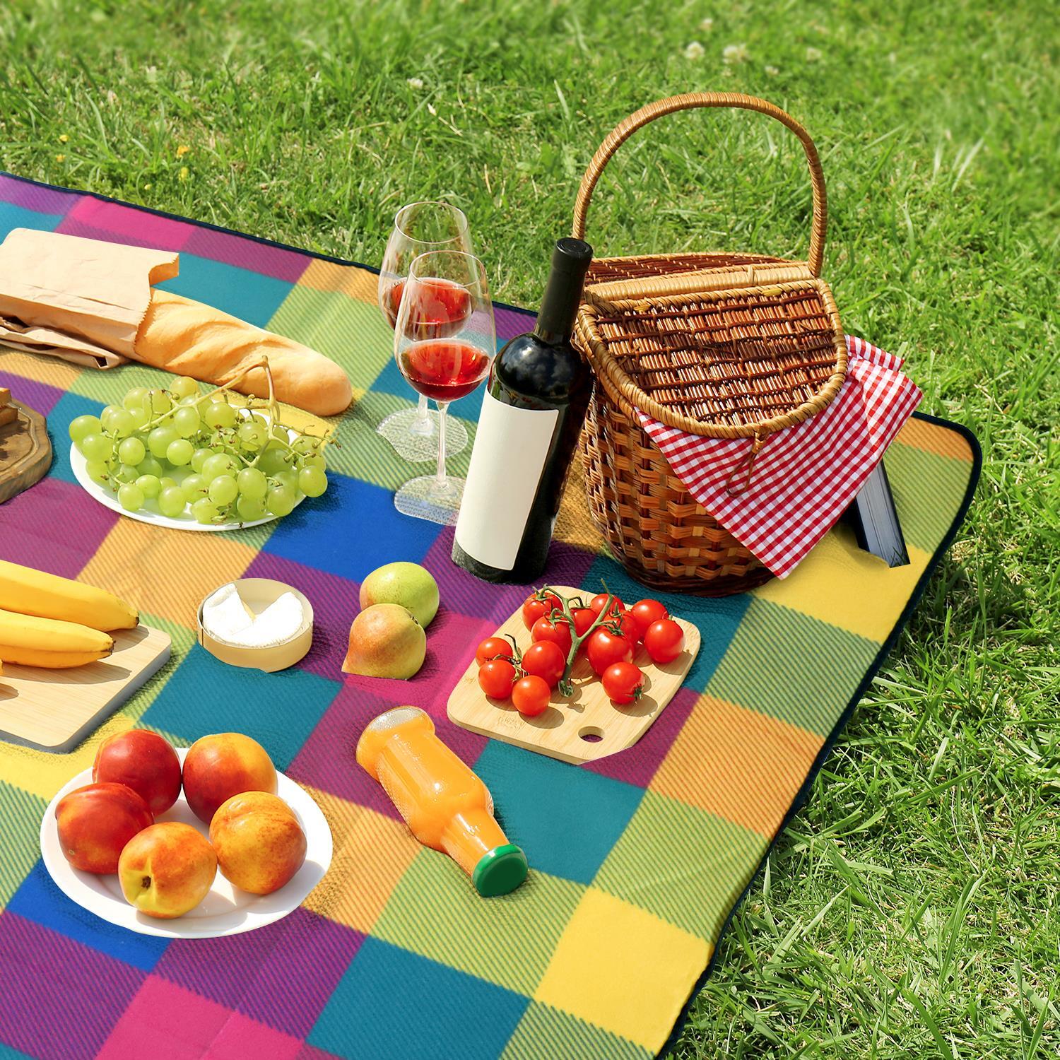 Durable material - With the acrylic surface, ample sponge padding, this picnic blanket is tear resistant and durable for extended outdoor use.