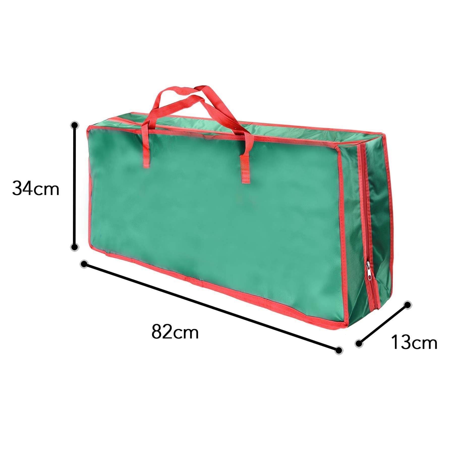 DIMENSIONS: Each large bag is 83 x 35 x 14 cm. approx. The size of this fabric storage bag and the durable handle give ample storage space to carry your Christmas decorations around.