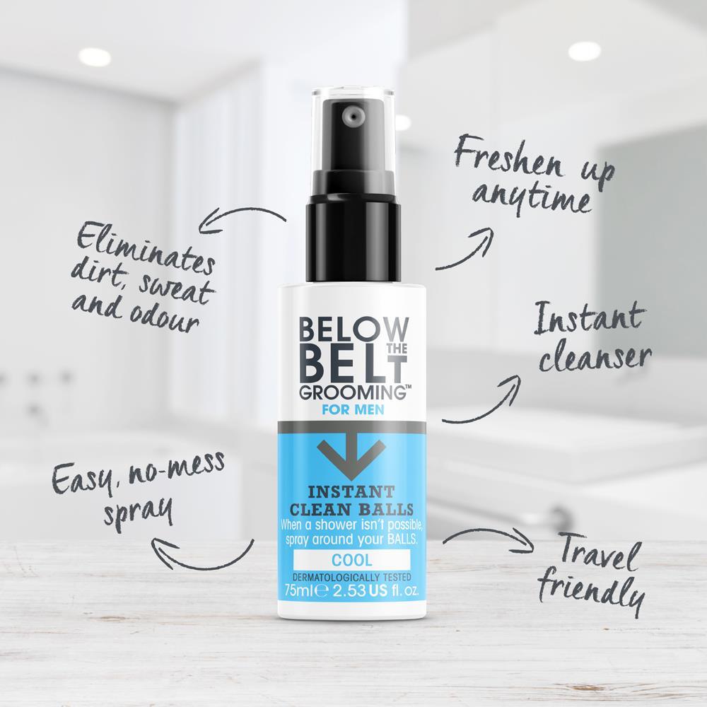 Need to freshen up but no time to shower? Simply spray instant clean balls around the ball and groin area to instantly cleanse and refresh for that extra confidence when you need it most.This fragrance free option has all the benefits of feeling fresh and dry and has an invigorating fresh scent.Below the belt grooming is free from aluminium, parabens, and Talc so you can trust in our formulation that it will be kind to your skin.Makes a great mens gift for runners and will be gratefully received by your husband, partner, boyfriend, brother, uncle or nephew.All of our products are dermatologically tested to achieve gentle yet highliy effective results and are Vegan friendly and Cruelty free. "