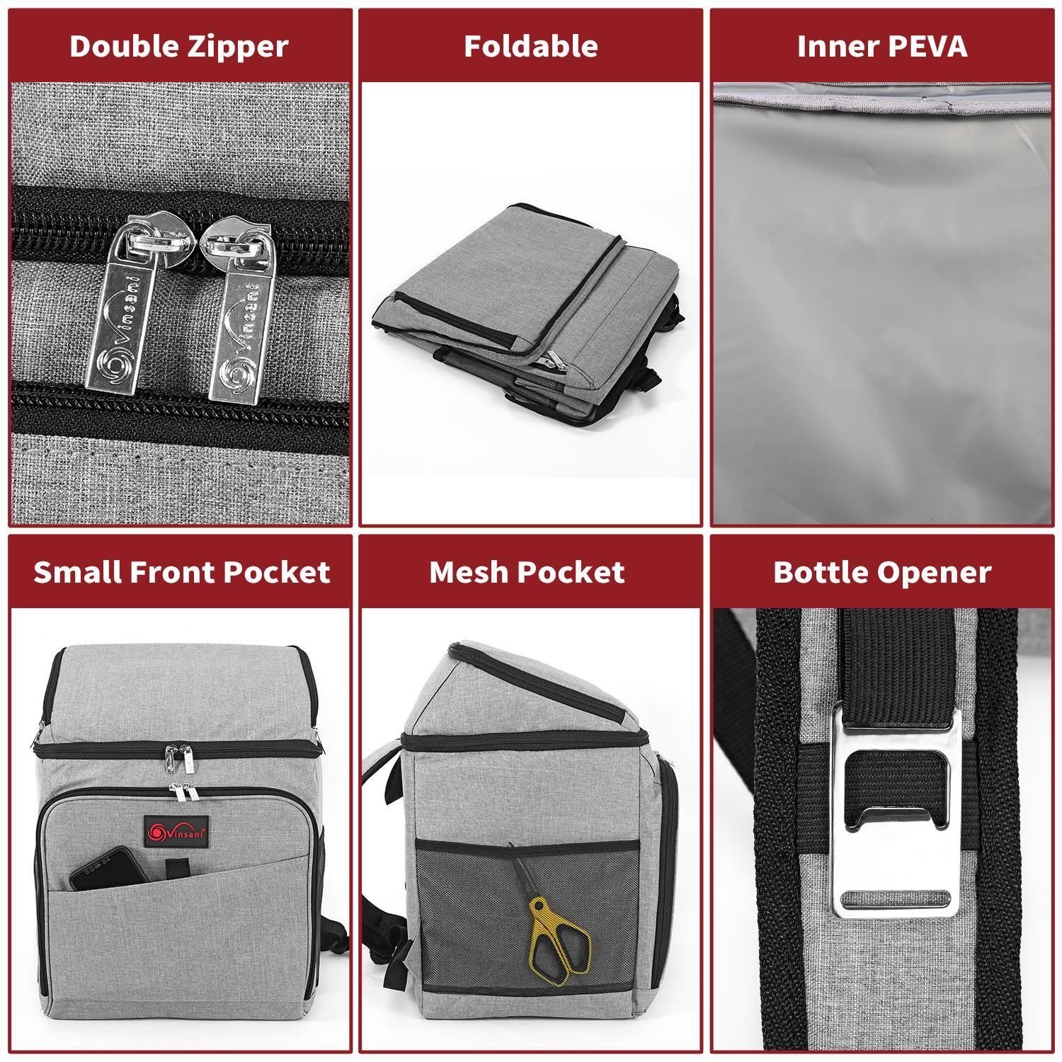 26Lt Grey Backpack Cooler Multi Pocketed Picnic Insulated Bag