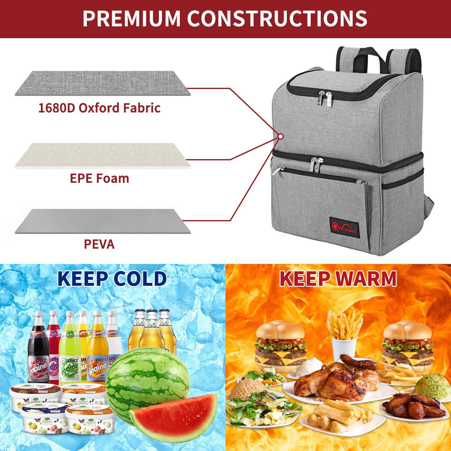 PREMIUM CONSTRUCTIONS: Our cooler bag's exterior is made of water-resistant 1680D Oxford fabric, which keeps the contents dry and clean. For excellent insulation, the inside lining was composed of food-grade PEVA foil and cushioned with 8mm EPE foam.