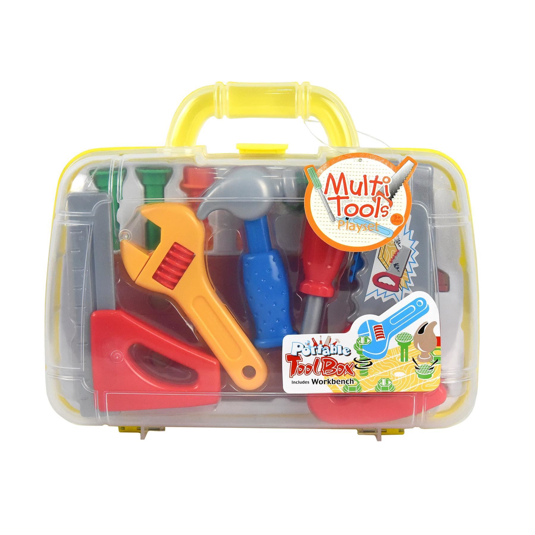 The tools play set will encourage role playing and is a great toy for developing hand and eye coordination.