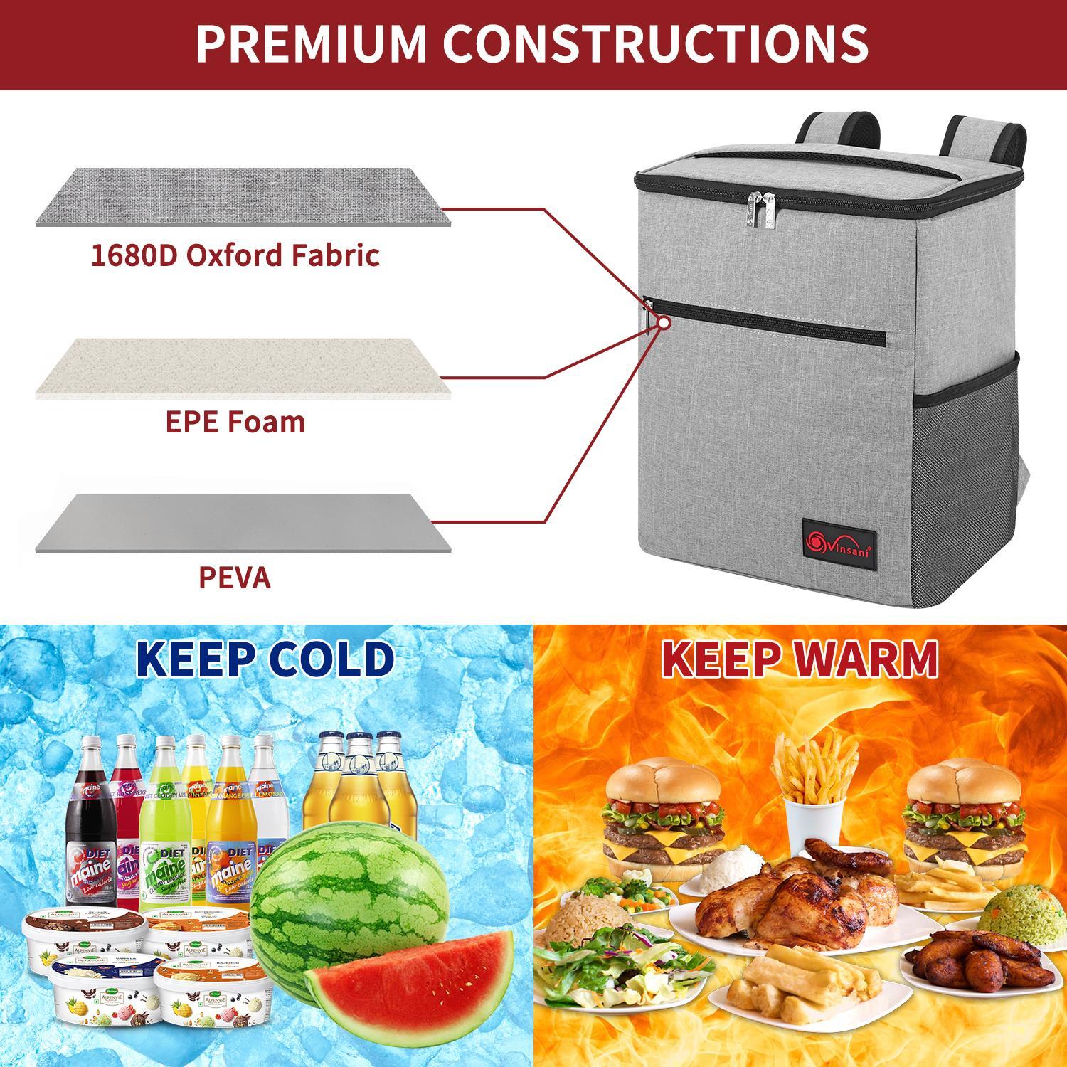PREMIUM CONSTRUCTIONS: Our cooler bag's exterior is made of water-resistant 1680D Oxford fabric, which keeps the contents dry and clean. For excellent insulation, the inside lining was composed of food-grade PEVA foil and cushioned with 8mm EPE foam.