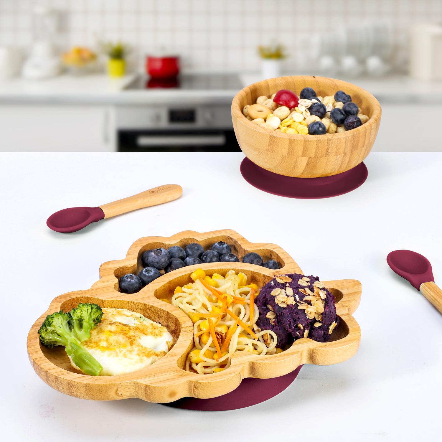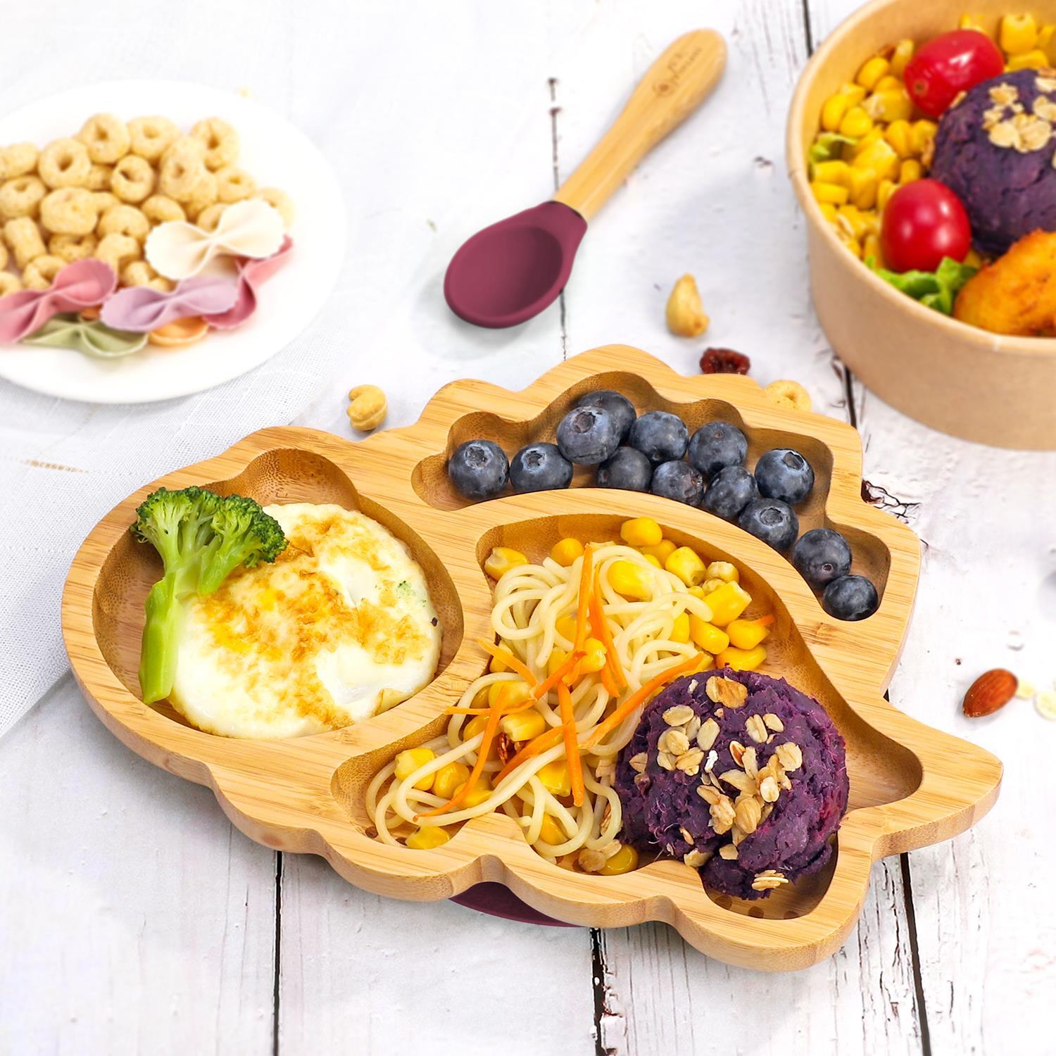 3-SECTIONED PLATE: Comes with a set of a plate, bowl, and 2 spoons. The 3 sectioned plate is convenient for serving various food groups and encouraging weaning. They are fantastic for assisting parents in preparing balanced meals.