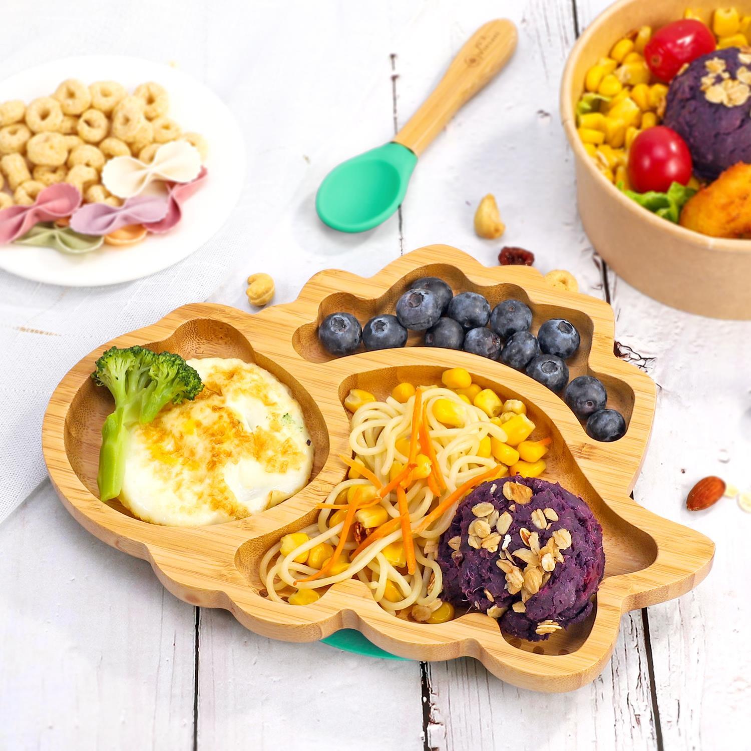 3-SECTIONED PLATE: Comes with a set of a plate, bowl, and 2 spoons. The 3 sectioned plate is convenient for serving various food groups and encouraging weaning. They are fantastic for assisting parents in preparing balanced meals.