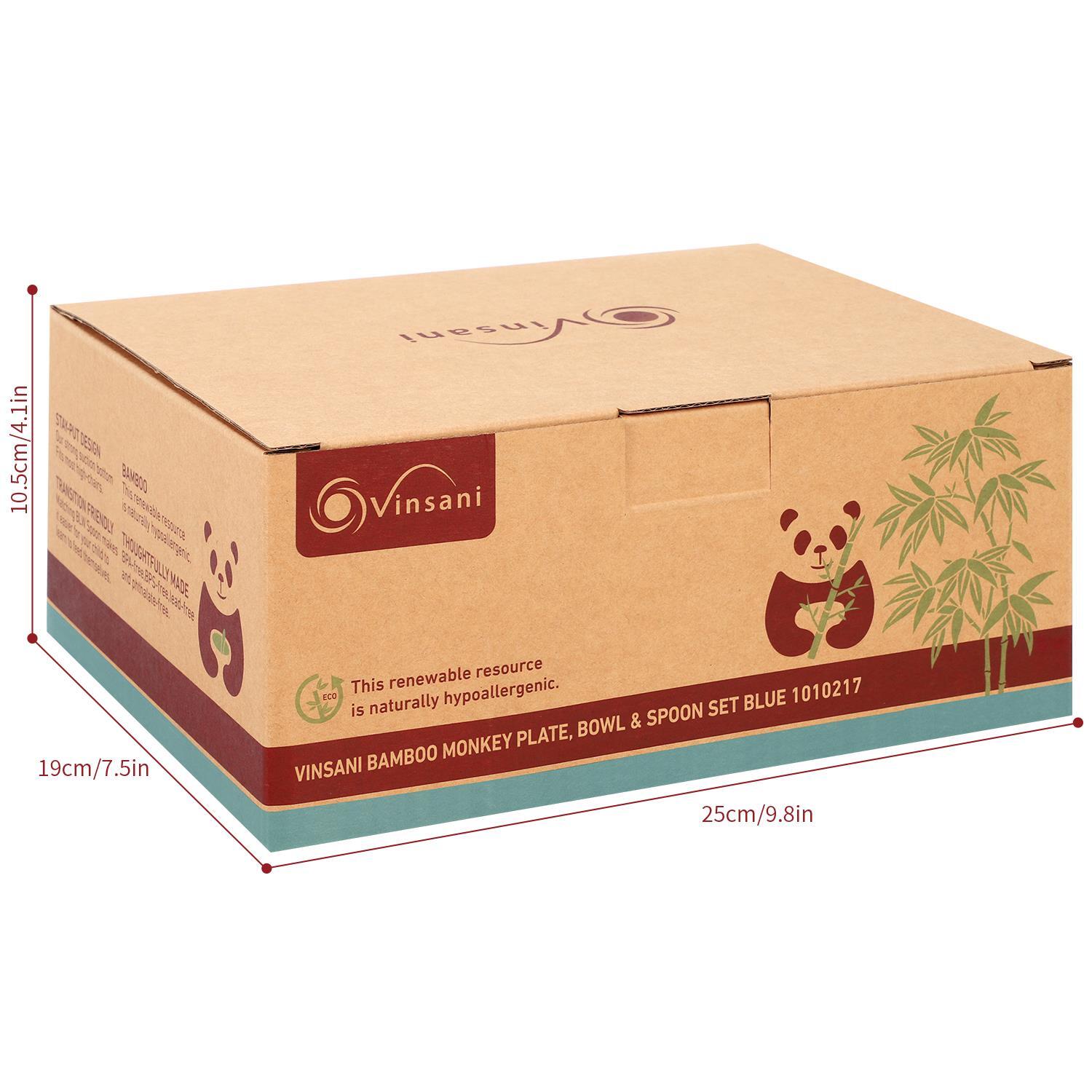 Bamboo Monkey Plate Bowl & Spoon Set Suction Bowls Stay-Put Design - BLUE
