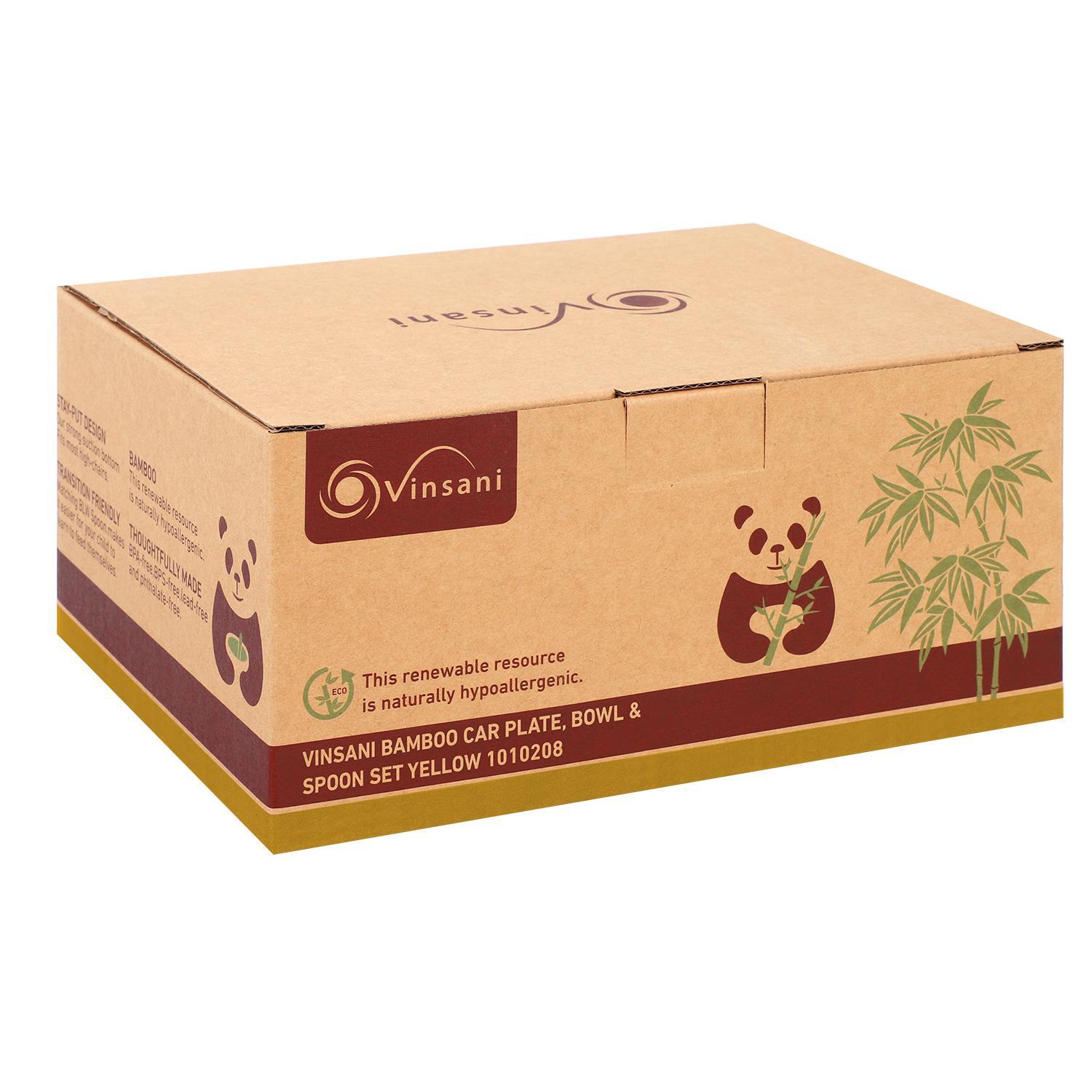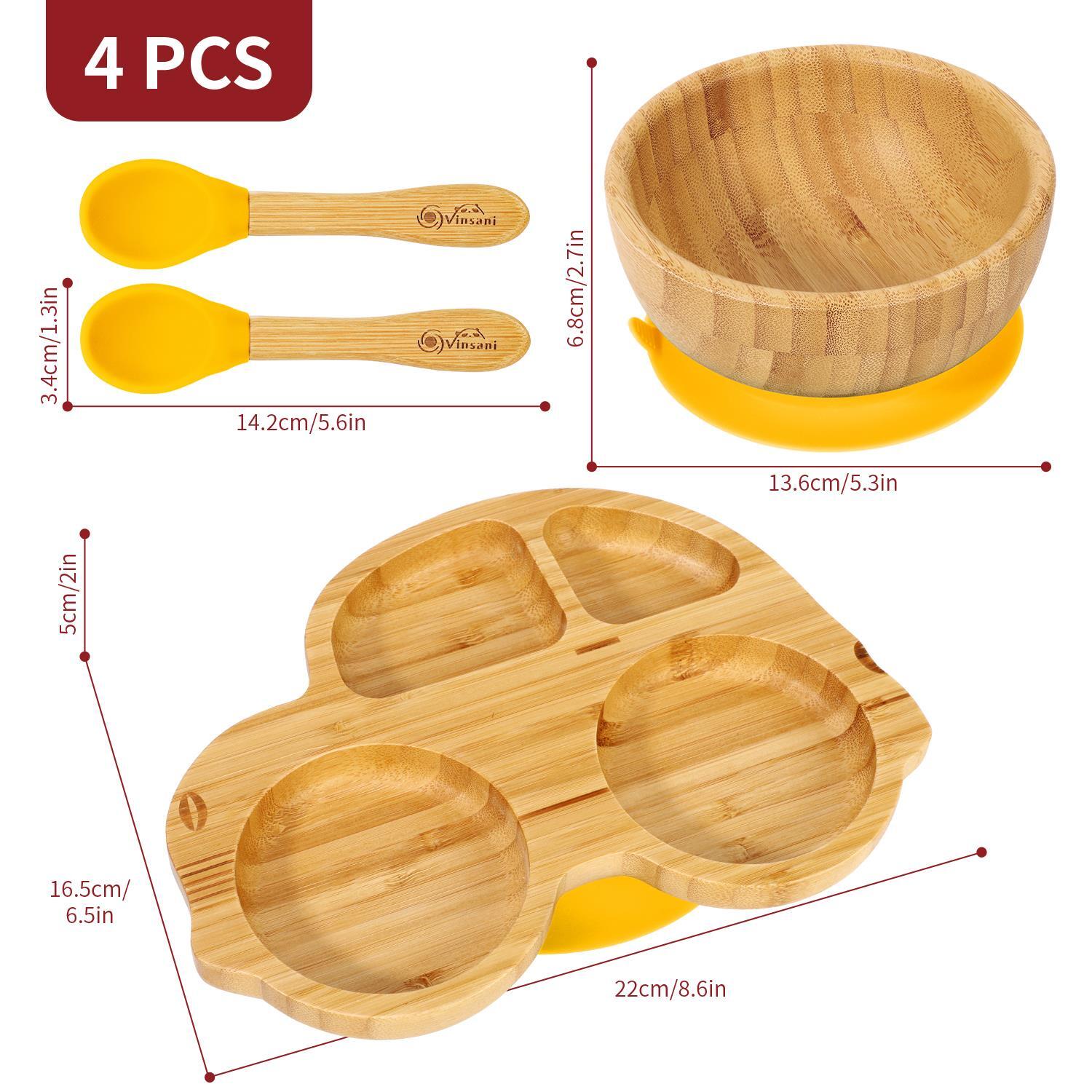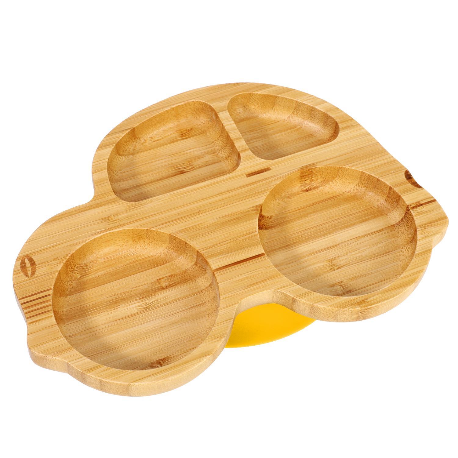 Bamboo Car Plate Bowl & Spoon Set Suction Bowl Stay-Put Design for Kids - YELLOW