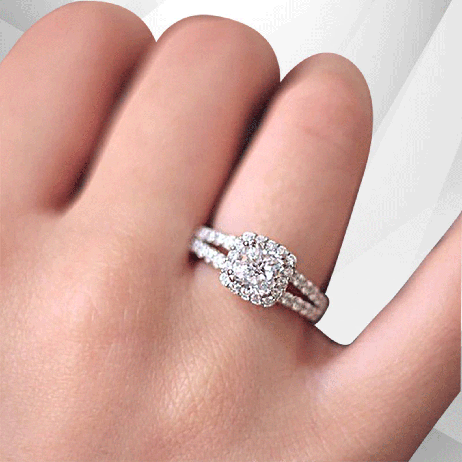 2.5Ct Round-Cut Diamond Cushion Halo Bridal Engagement Ring 18K White Gold Over