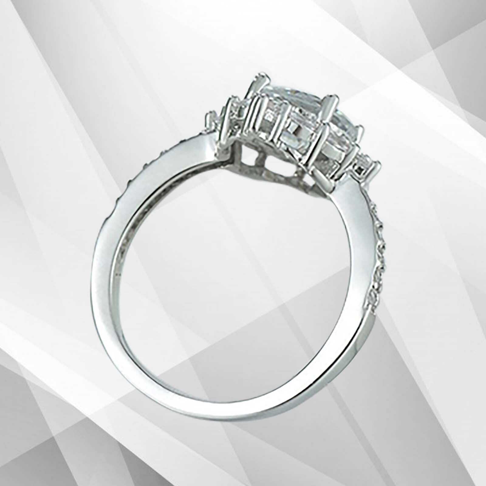 2.5Ct Round-Cut 25 CZ Diamonds Halo Bridal Engagement Ring 18K White Gold Over