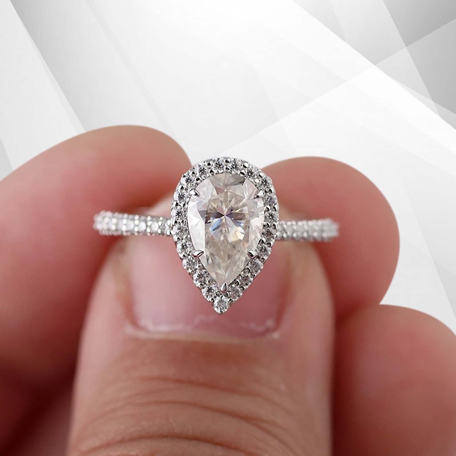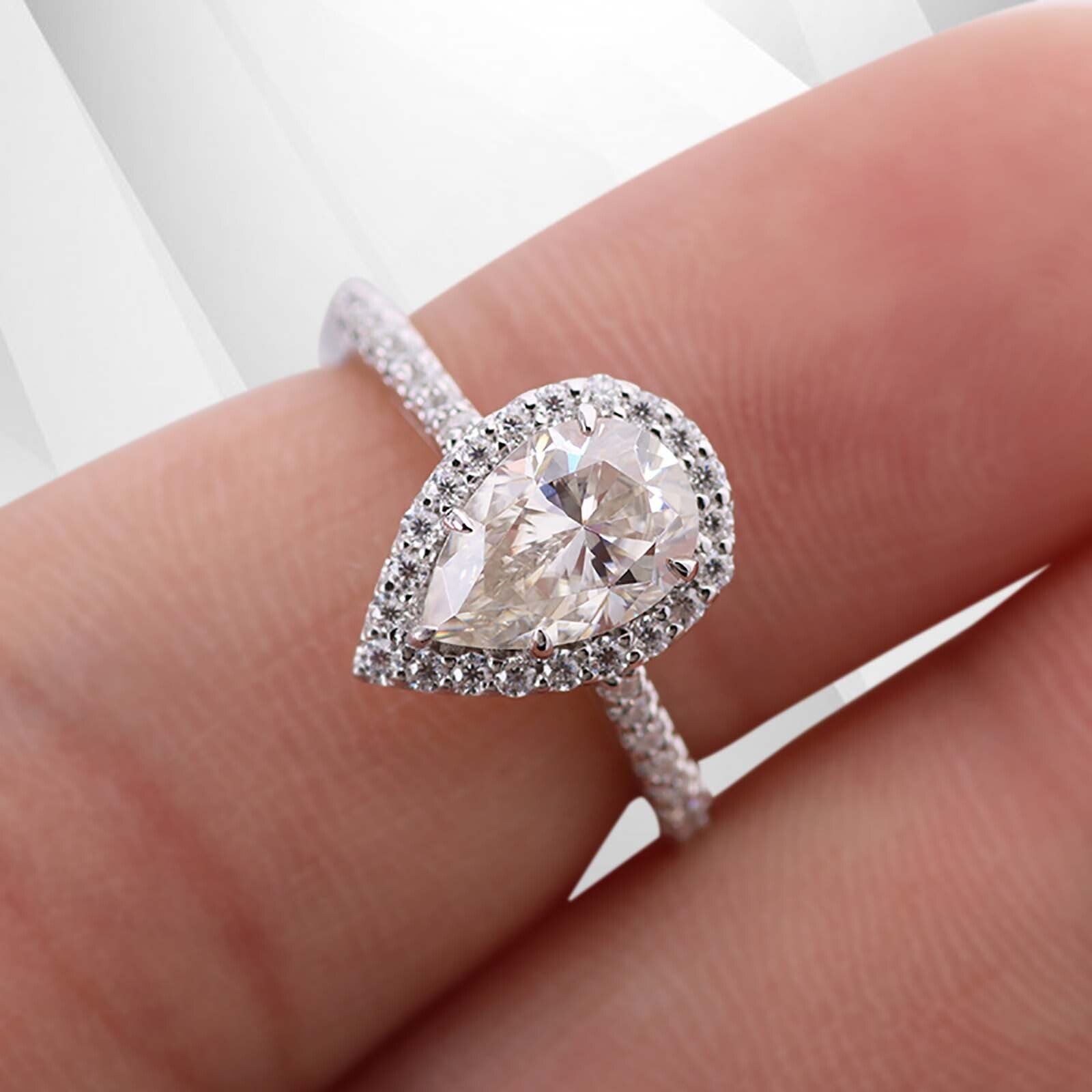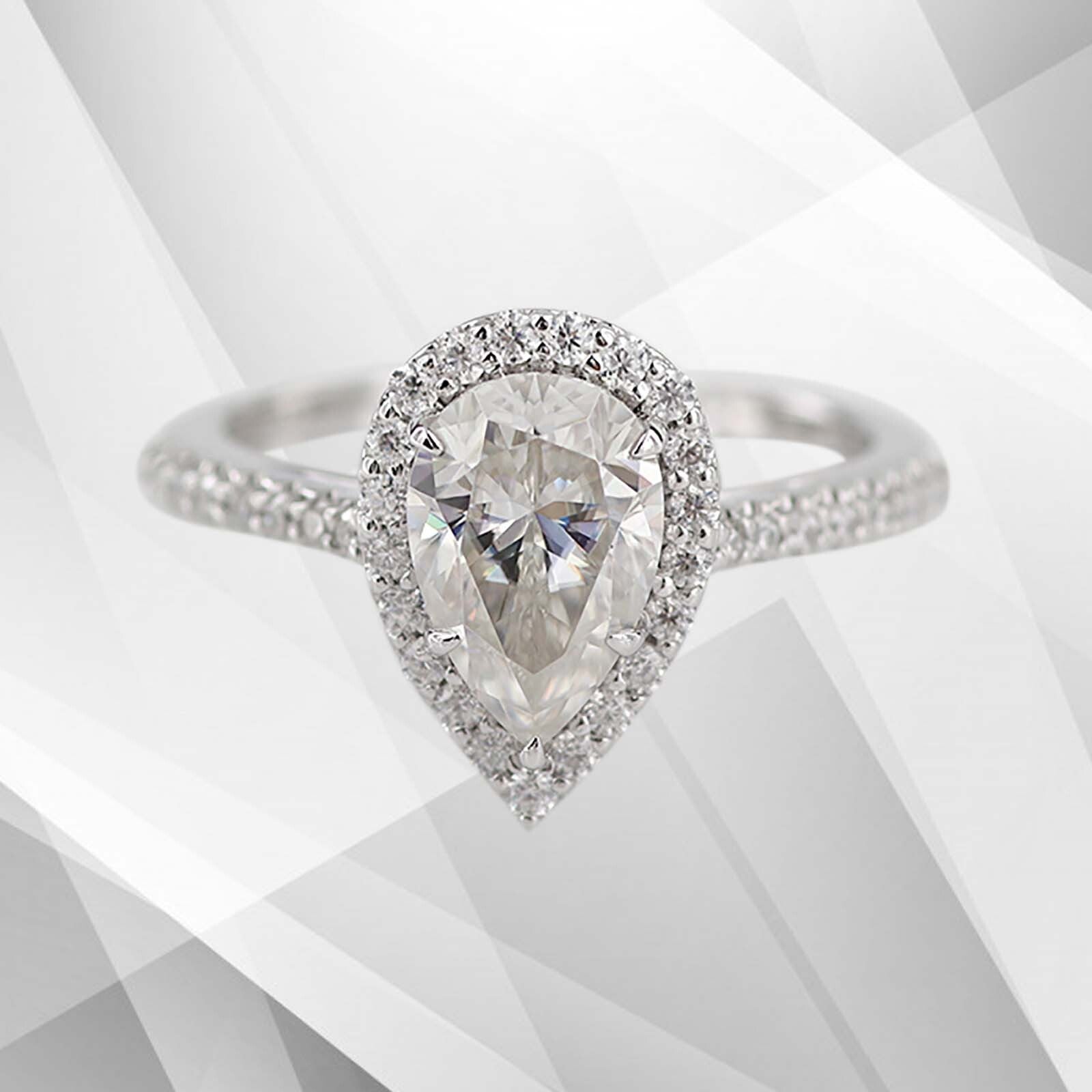 2.88Ct Pear-Cut Diamond Cushion Halo Bridal Engagement Ring 18Ct White Gold Over
