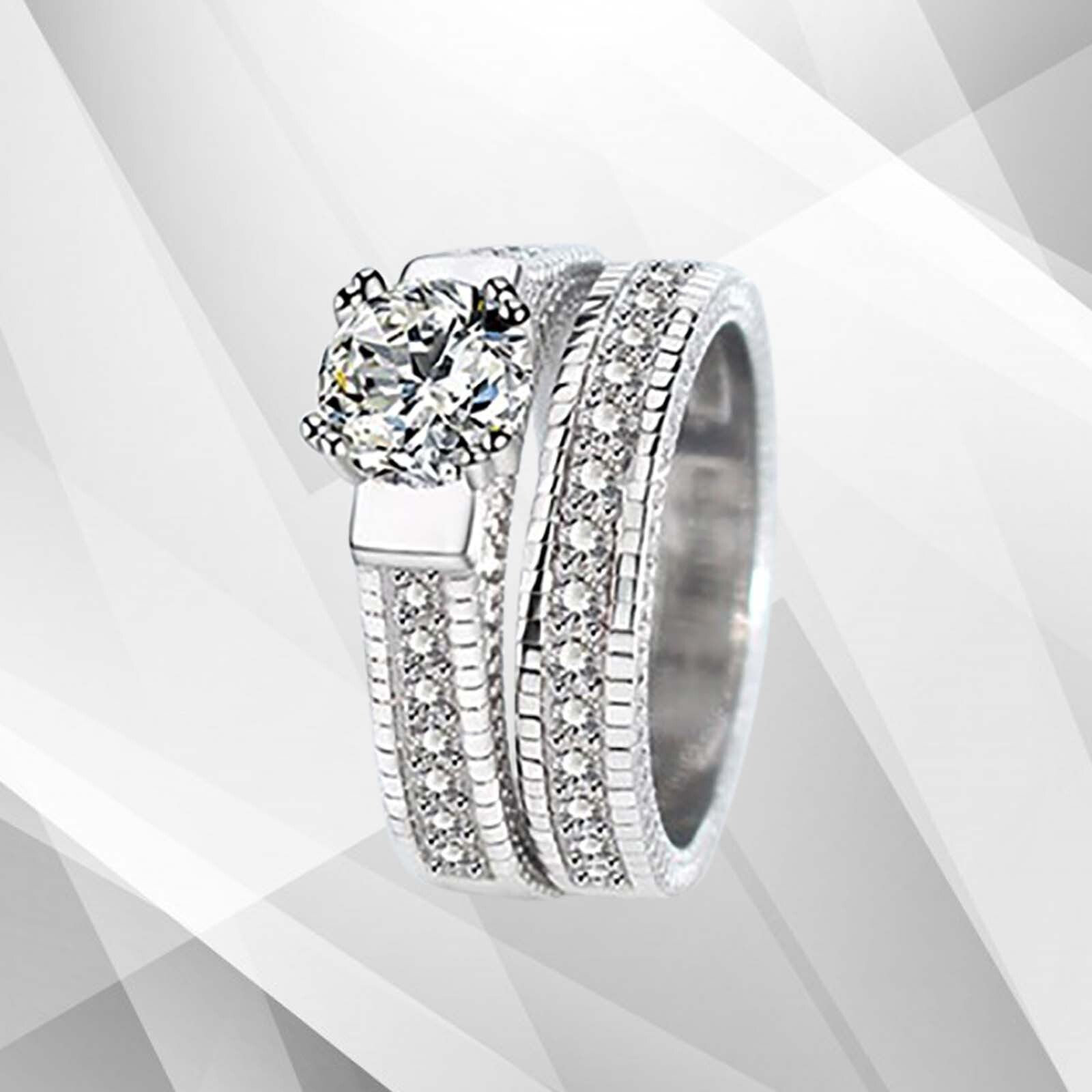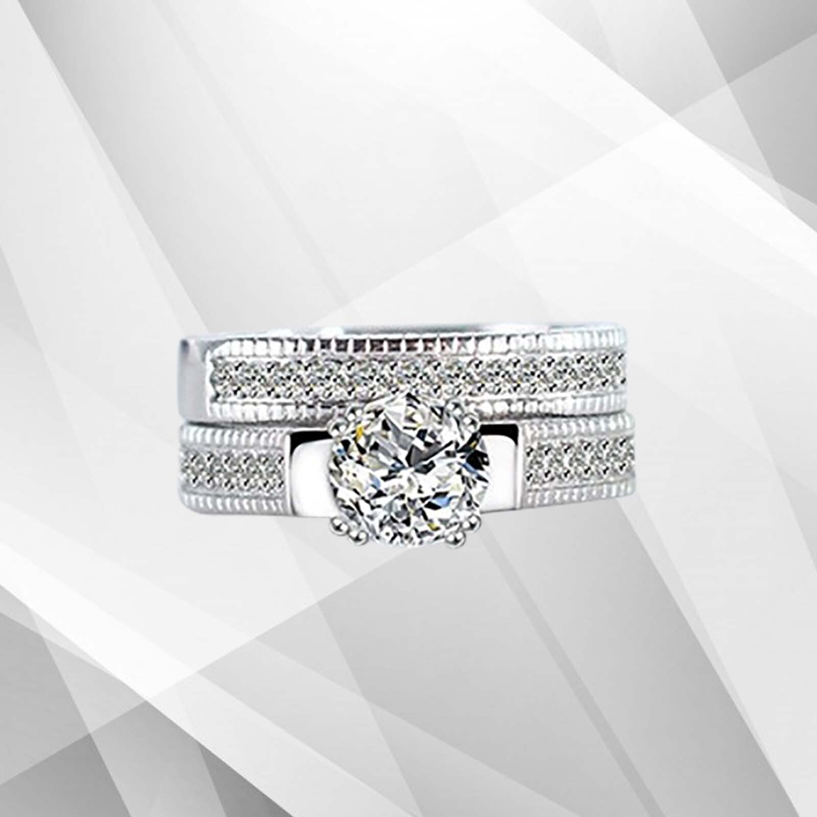 2.50Ct Diamond Posh Bridal Engagement Double Band Ring Set 18Ct White Gold Over