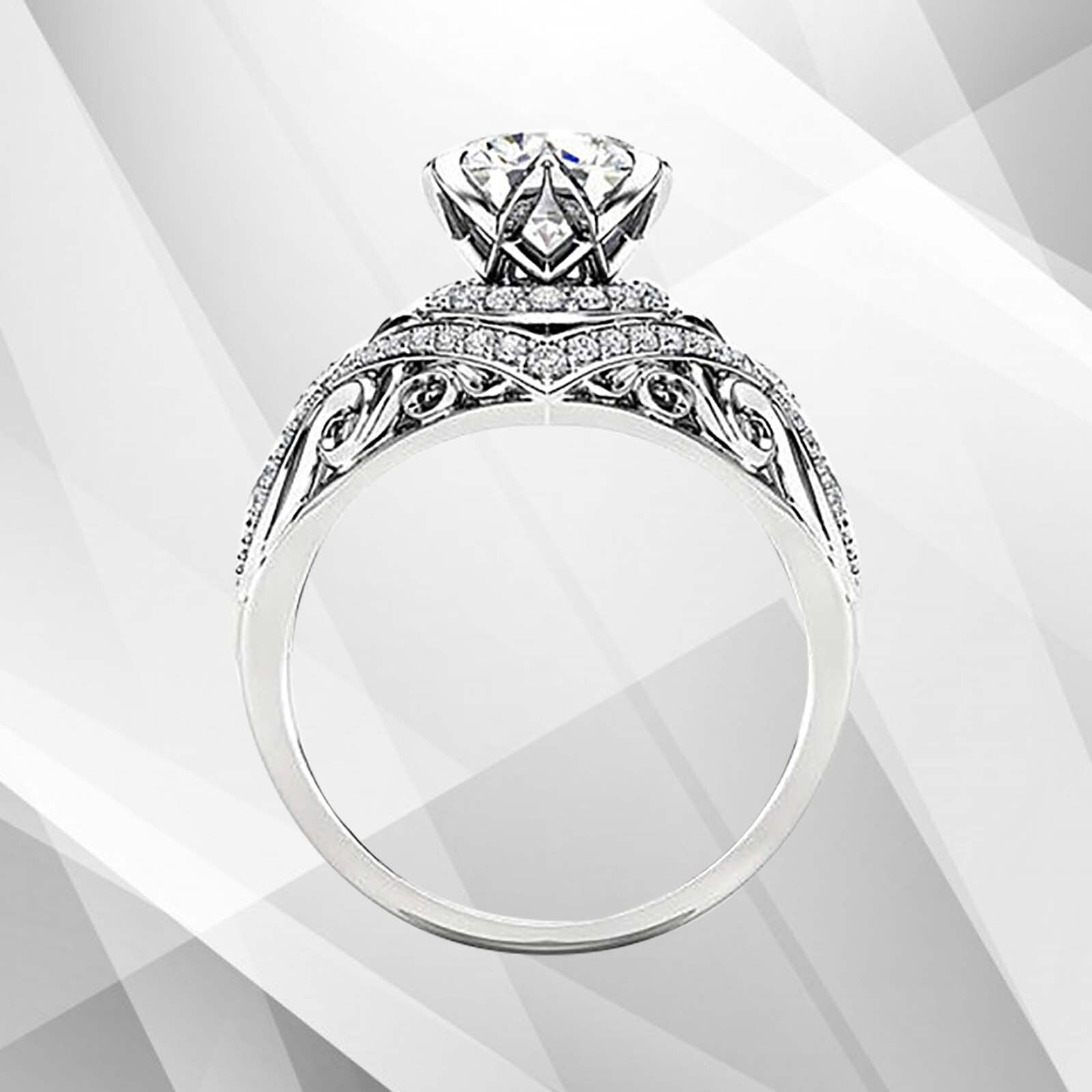 2.50Ct Round-Cut 55 Diamonds Engagement Party Solitaire Ring 18k White Gold Over