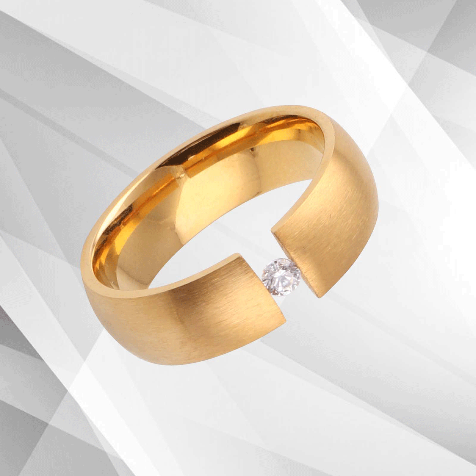 18Ct Yellow Gold Over 0.35Ct C Z Diamond Titanium Wedding Engagement Band Ring