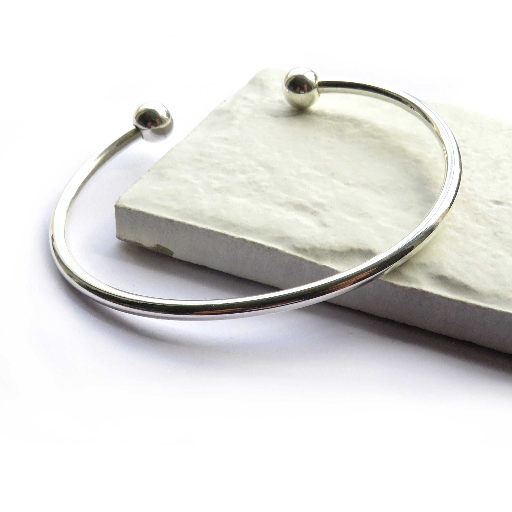 This modern torque bangle is plated with silver perfect for a teenage girls birthday, a friend, for a women's Christmas gift, Valentines gift or for Mothers day go on treat her & make her feel special. These bracelets have silver ball ends that can screw off , so if you would like to add your own charms this is easy to do.