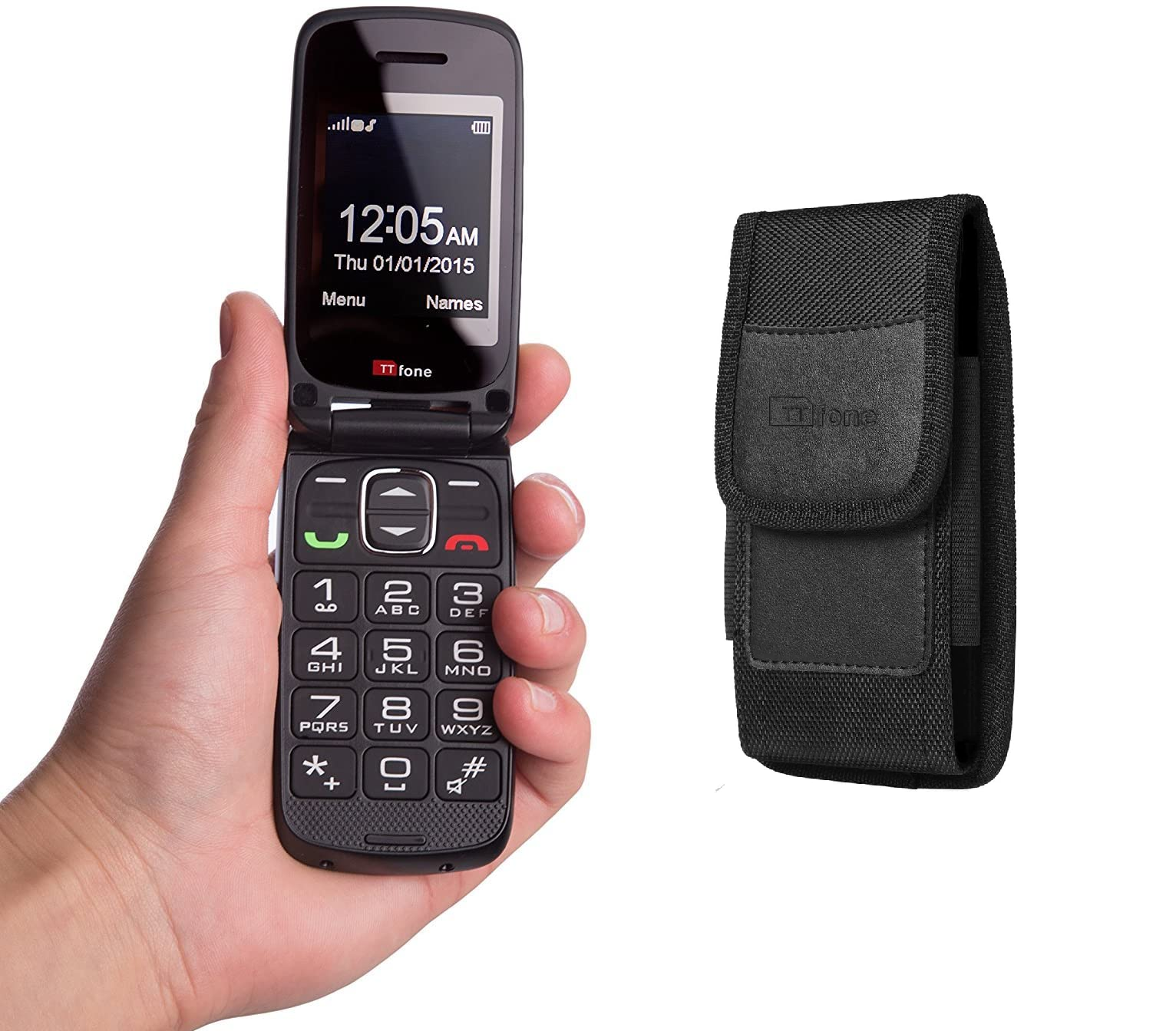 TT300 Star GREY Flip Folding Big Button Senior SOS Emergency Button Mobile Phone & CB4 Nylon Holster Case & Vodafone PAYG Sim Card