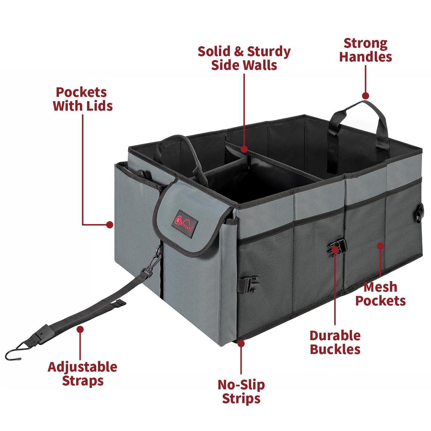 DECLUTTER YOUR CAR: Is your boot that cluttered you can't find what you need? A perfect solution to organize your car tools and equipment, groceries, emergency tools, cleaning supplies, household belongings, camping supplies, etc. keeping them from the mess & rolling around in your trunk rear, backseat or home. Helps prevent breakages of your stored items.