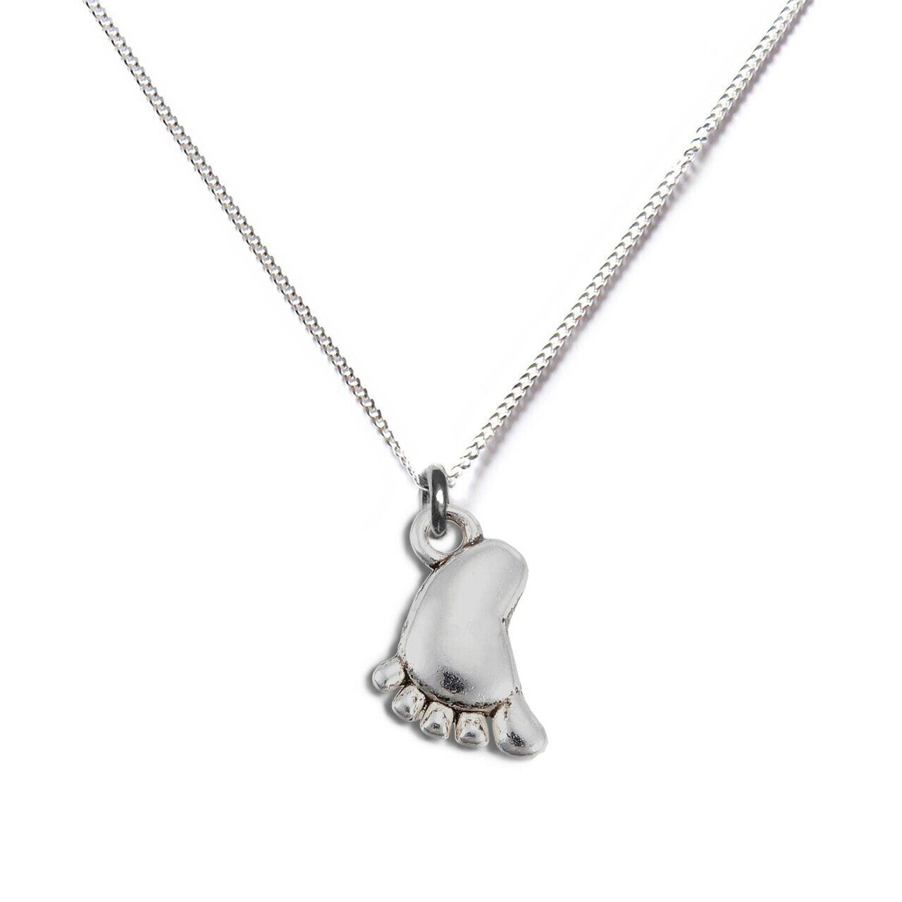 Our Baby Foot silver necklace is a lovely gift to celebrate a new baby ideal for the big sister, new mummy,aunty or grandmother. It's also a thoughtful gift for someone travelling or taking new steps of adventure in their life whether it's for your best friend, sister, niece, daughter or granddaughter.Sterling Silver Chain Length: 16/18 inches (40.5-46cm) 16 inch chain with a 2 inch extender chain.Baby Foot Charm - 18 x 15 x 2mm Tibetan silver with and antique finishDelivered in our complimentary gift boxLetter box friendly gift - it fits through a standard size letter box.