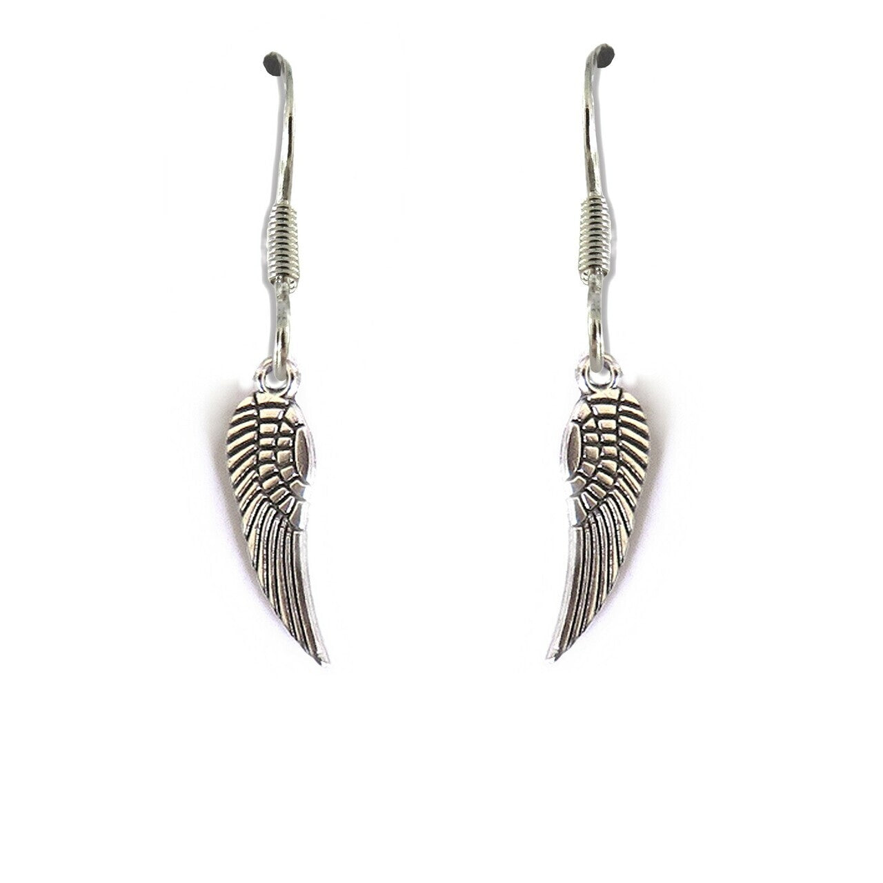 Our angel feather wing earrings are lovely for so many occasions maybe to thank a nurse of teacher or a friend that has been there for you during a difficult time or a little memorial gift for someone who has had a bereavement. These are great a lovely gift for women & girls a daughter, sister, gran daughter, niece or for a special neighbour.Drop Earrings : Sterling Silver PlatedAngel Wing Charm - 17mm Tibetan silver with and antique finishDelivered in a black gift box Letter box friendly gift - fits through a standard size letter box