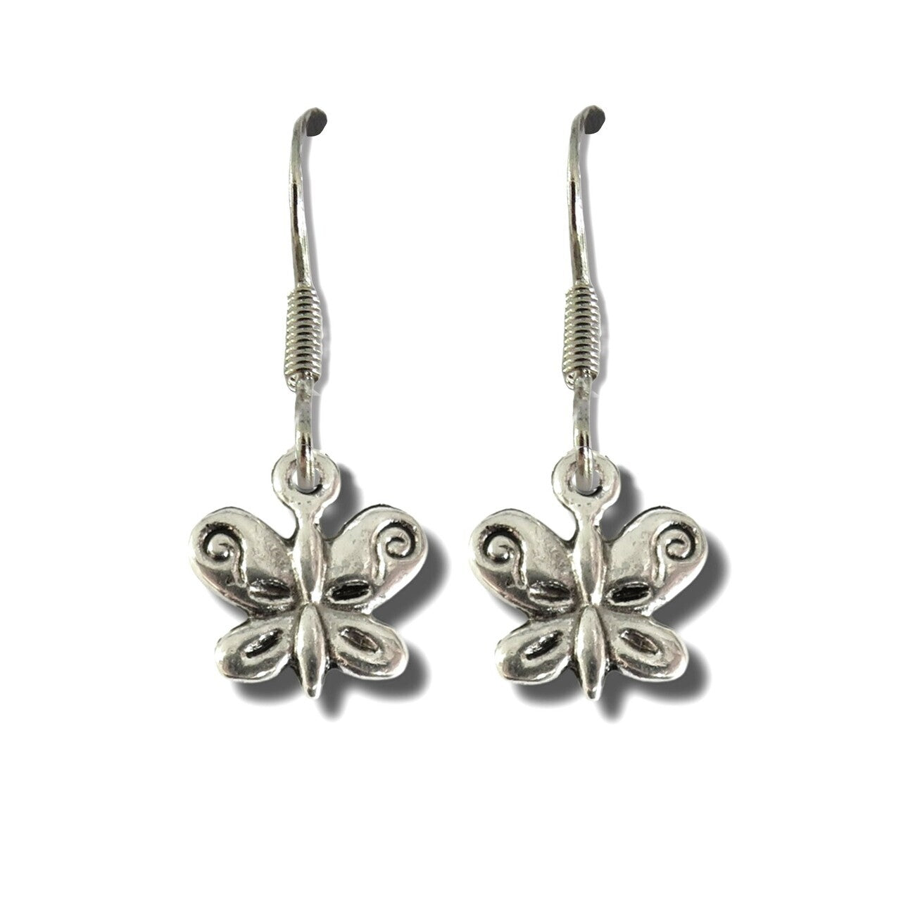 Our butterfly earrings are a lovely gift for your best friend, sister, Auntie, Mum or Gran for their birthday or Christmas we are sure she will love them.Drop Earrings: Silver PlatedButterfly charm - 13 x 13 x 2.5mm Tibetan silver with and antique finishDelivered in a black gift boxLetter box friendly gift - it fits through a standard size letter box