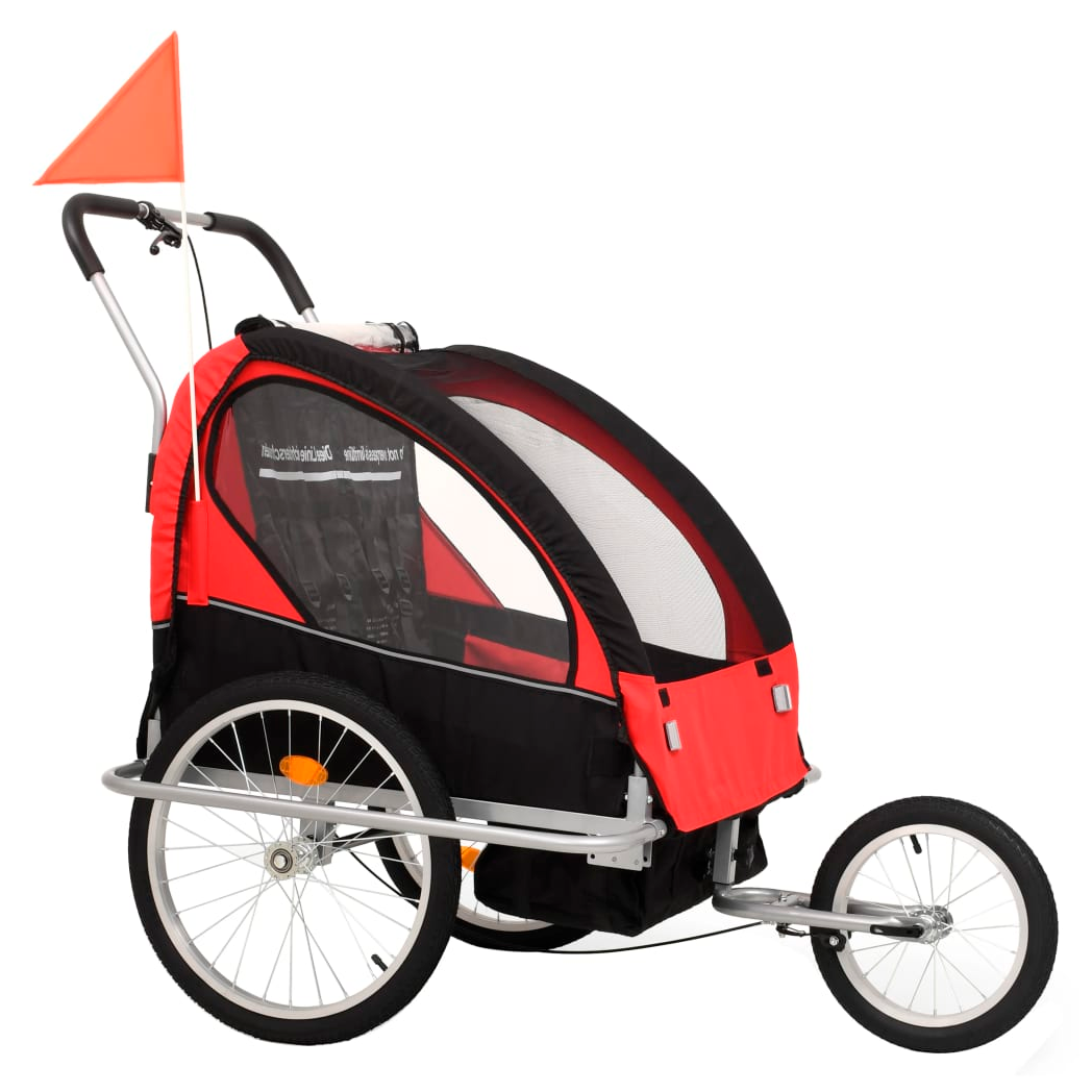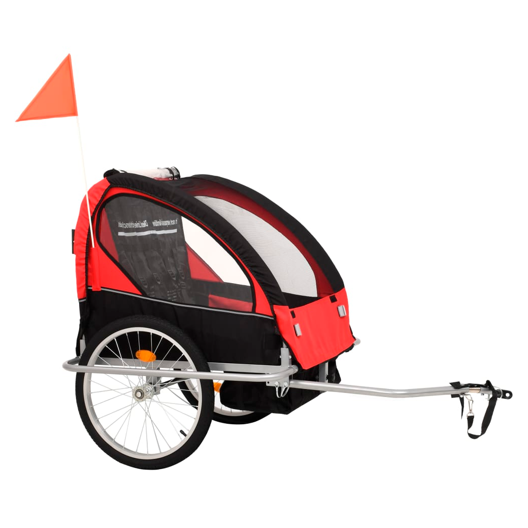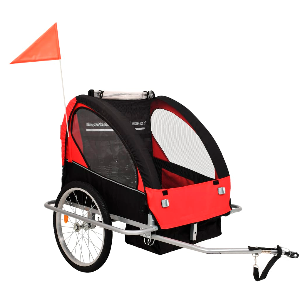 2-in-1 Kids' Bicycle Trailer & Stroller Black and Red
