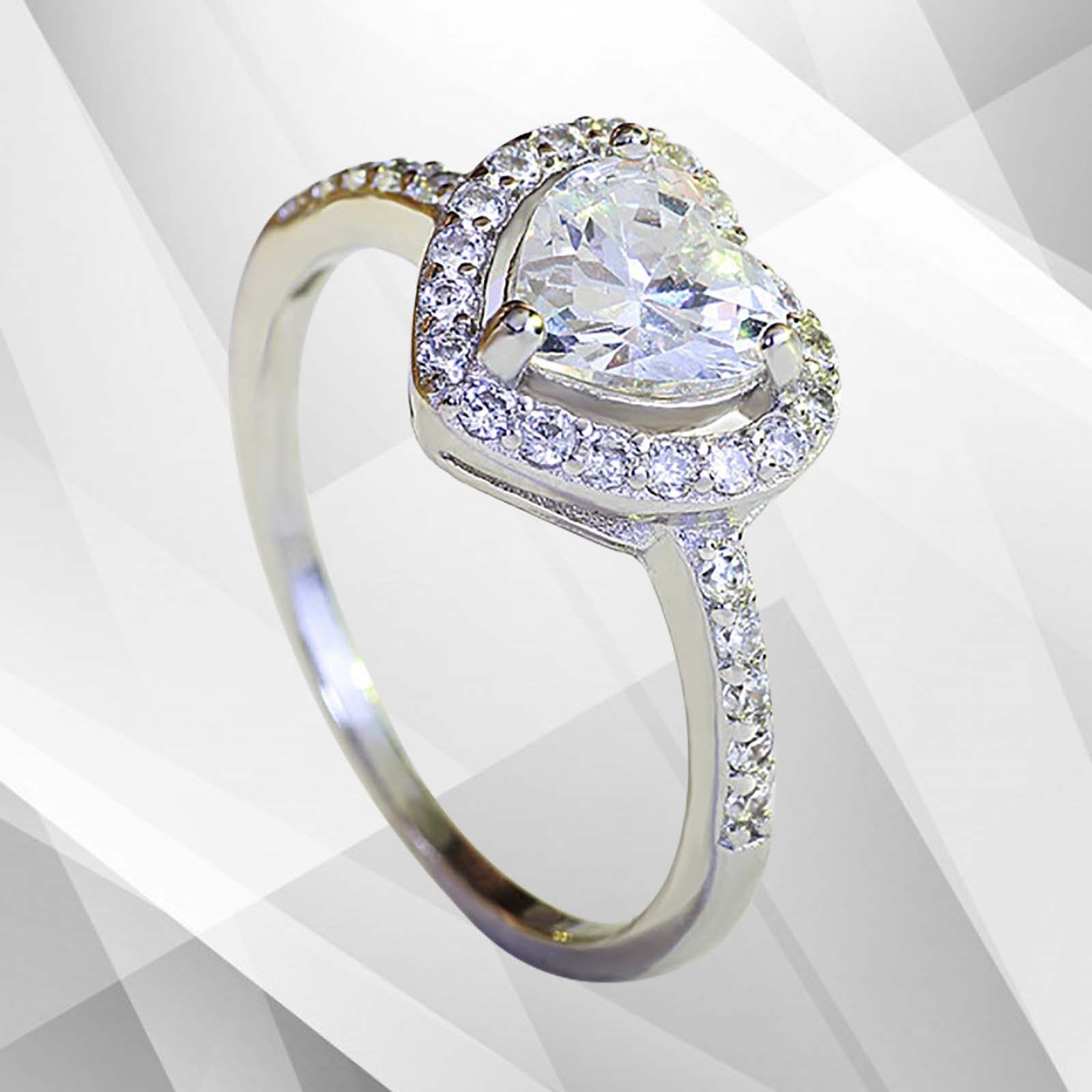 2.88Ct Heart-Cut CZ Diamonds Halo Bridal Engagement Ring 18Ct White Gold Over, Ring Size O