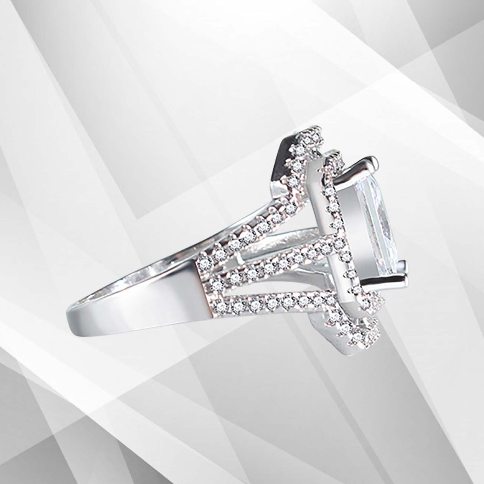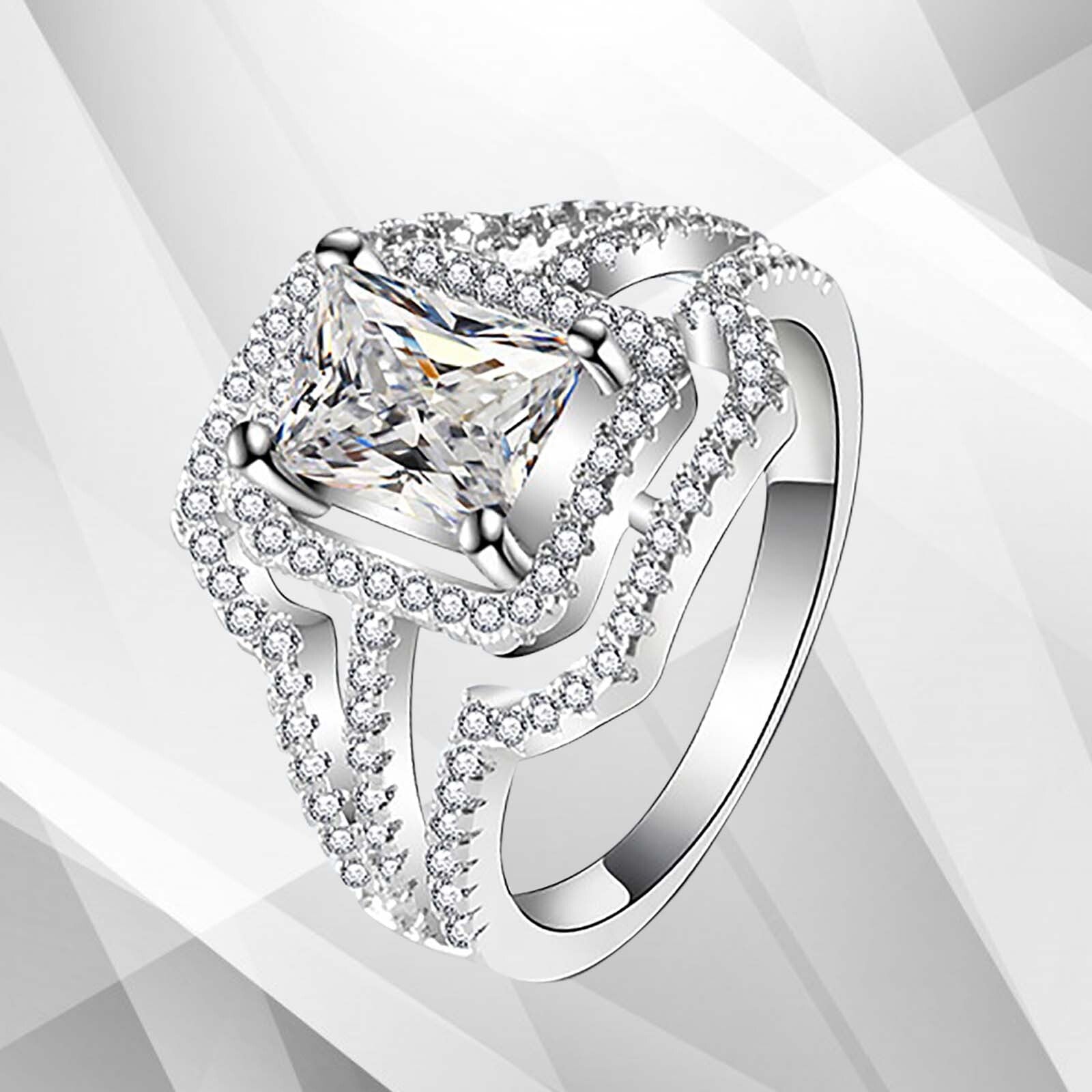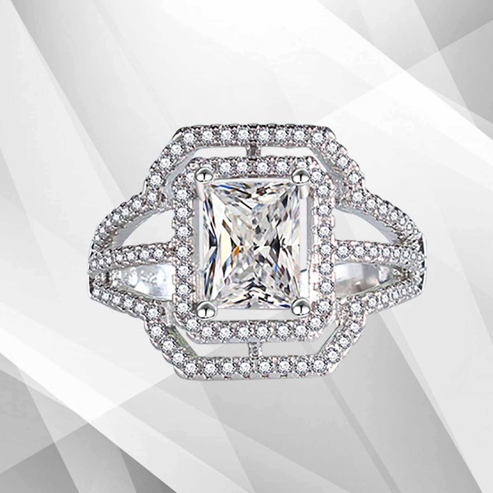 3.2Ct Square-Cut Diamond Cushion Halo Bridal Engagement Ring 18K White Gold Over, Ring Size L