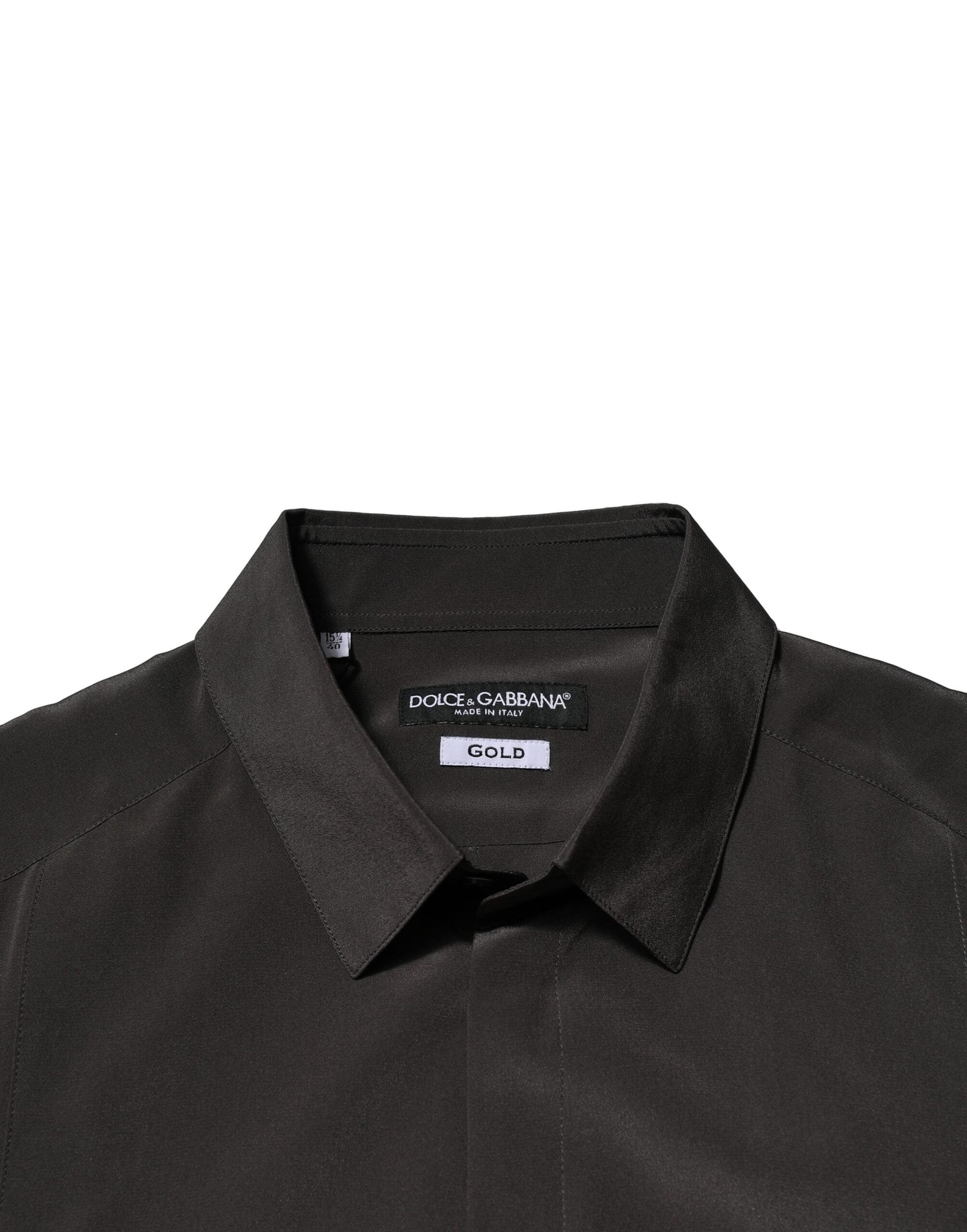 Dark Brown Silk GOLD Men Dress Formal Shirt