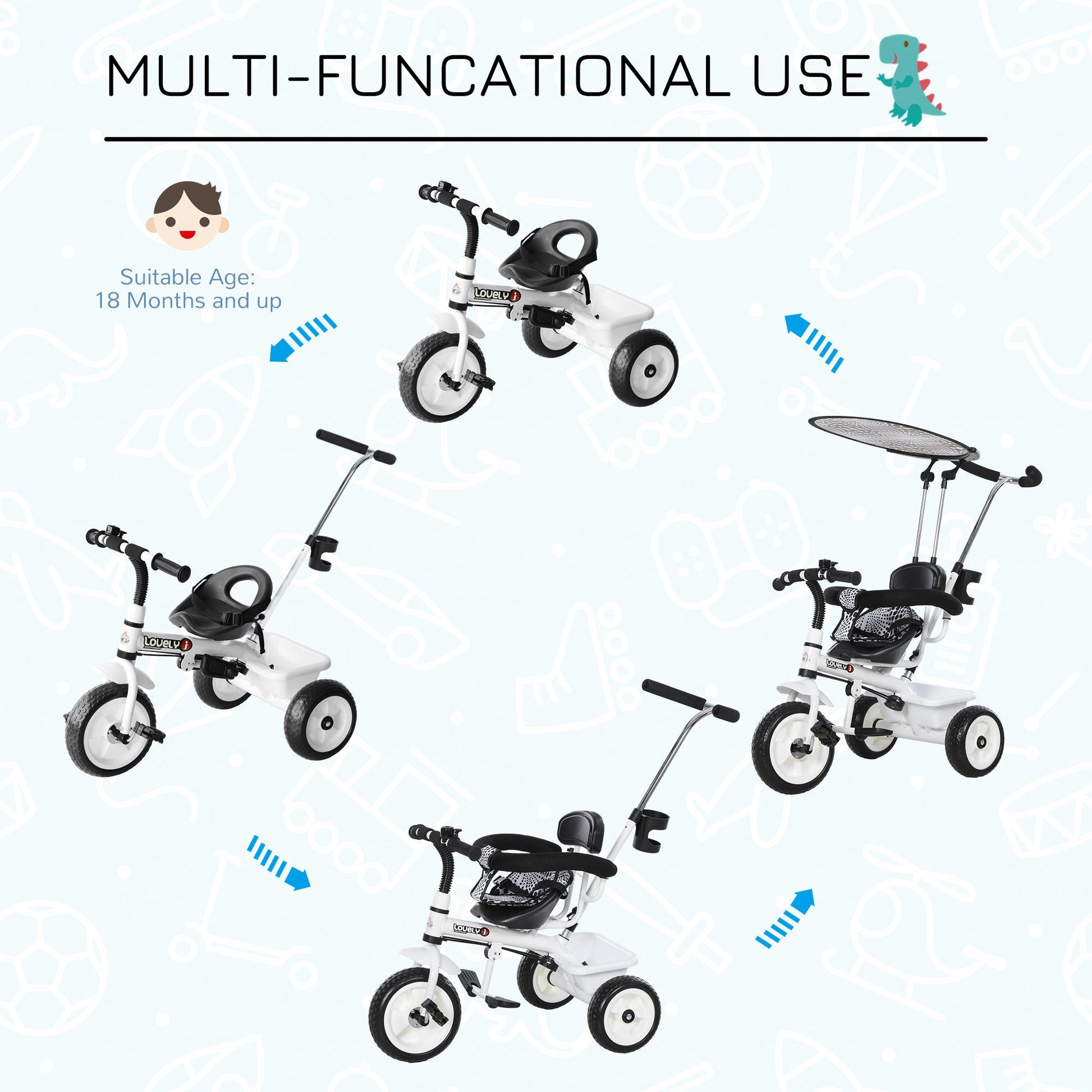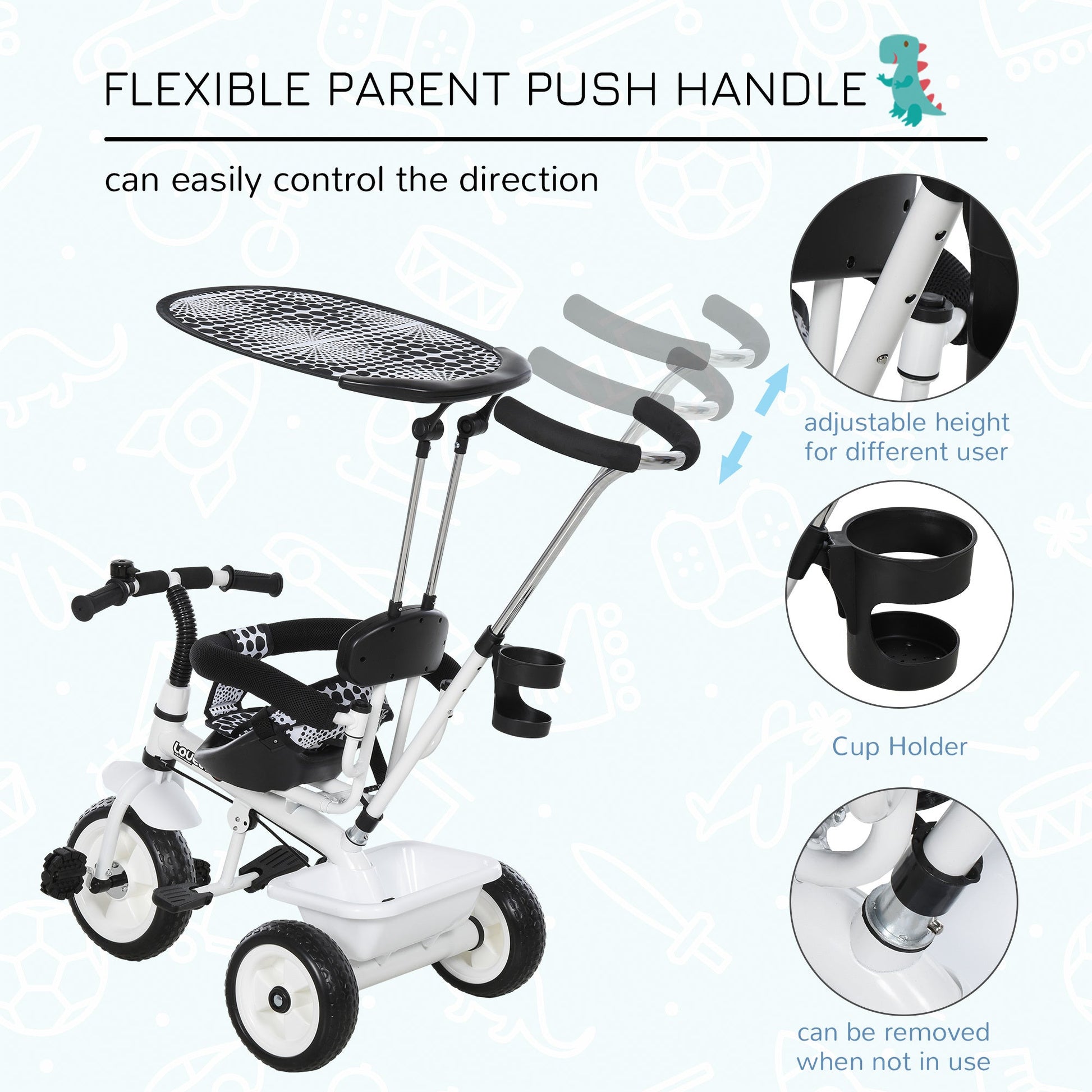 Kids Children Tricycle Ride on 3 Wheels Safe Canopy w/ Handle White HOMCOM