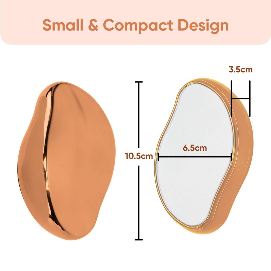 MAGIC CRYSTAL HAIR ERASR: Our revolutionary magic crystal hair eraser uses nano-crystalline technology that will clump and break away unwanted hair in an instant without irritating or pulling your skin leaving it silky smooth. It also reduces hair growth.PAINLESS & REUSABLE - This crystal hair remover offers a pain-free hair removal experience, unlike waxing and shaving. It is reusable and does not need any refilling or recharging. Its healthier for your skin and leaves it completely cut-free. It's easy to clean, all you need is to rinse it with water after each use.ECO-FRIENDLY AND CHEMICAL FREE - It is made from premium materials with a smooth finish that offers uncompromising safety and reliability, so you can use it worry-free. Plus, it is 100% chemical-free, hygienic, and gentle on the skin. Works well on all body parts such as arms, legs, chest, armpits, back and neck.EASY TO USE - Magic crystal hair eraser offers you an effortless, painless and cut-free hair removal solution. It is easy to use, simply rub it in a circular motion against your skin, it will help exfoliate while simultaneously removing unwanted hair. Use lotion on your skin after hair removal for a smoother finish. DIMENSIONS - This portable crystal hair removal measures 10.5 cm H x 6.5 cm W with a 3.5 cm depth. Its compact size allows for easy carrying in a pocket or handbag. Perfect for both men and women. Available in pink and gold colour.