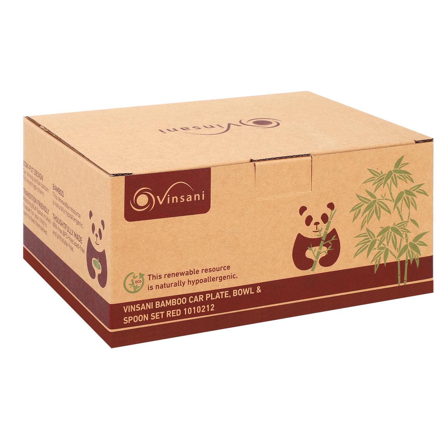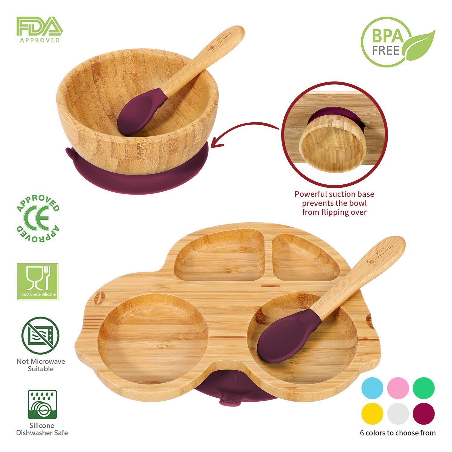 Bamboo Car Plate Bowl & Spoon Set Suction Bowl Stay-Put Design for Kids - RED