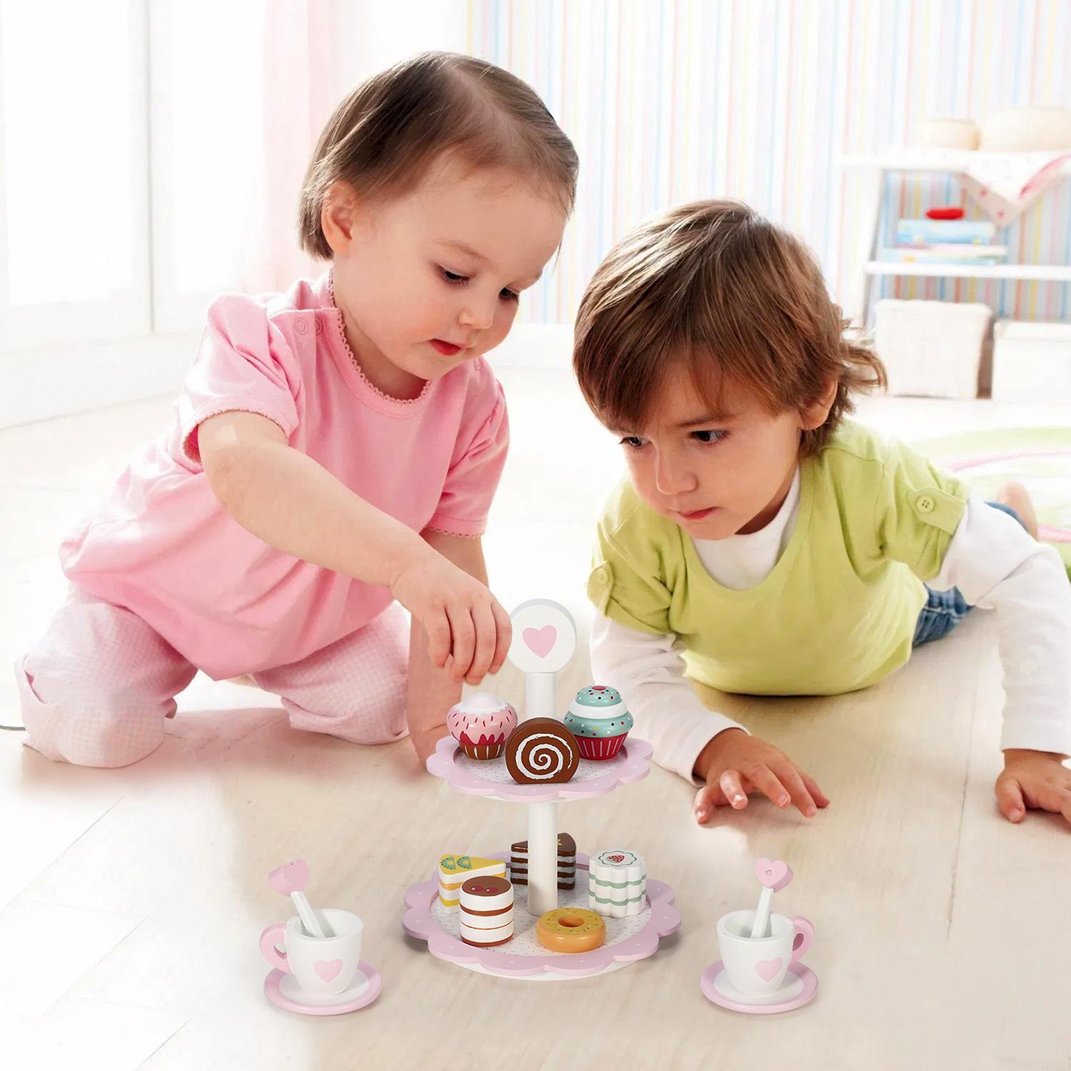 MADE FOR TEA PARTY: This vibrant dessert cake stand lets your kid have a imaginative tea party with dolls or invite friends for an evening together in pretend play game. Beautifully design and colour of this toy is chosen to attract young children.LEARN WHILE PLAYING: SOKA wooden toys develops imagination, hand & eye coordination, active play, numerical skills and creativity in young kids. They also help in developing social skills when playing in group.SET INCLUDES: Features a stunning 2 tier dessert cake stand with a heart shape artwork to it with 8 pieces of cake.DIMENSIONS: Diameter 18.5 x Height 21 cm Approx. Suitable for 3 years and over.CERTIFIED QUALITY: All SOKA toys comply with the international toy safety standards and are made from renewable resources with non-toxic paints & lacquers. Suitable for kids aged 3 Years or above.