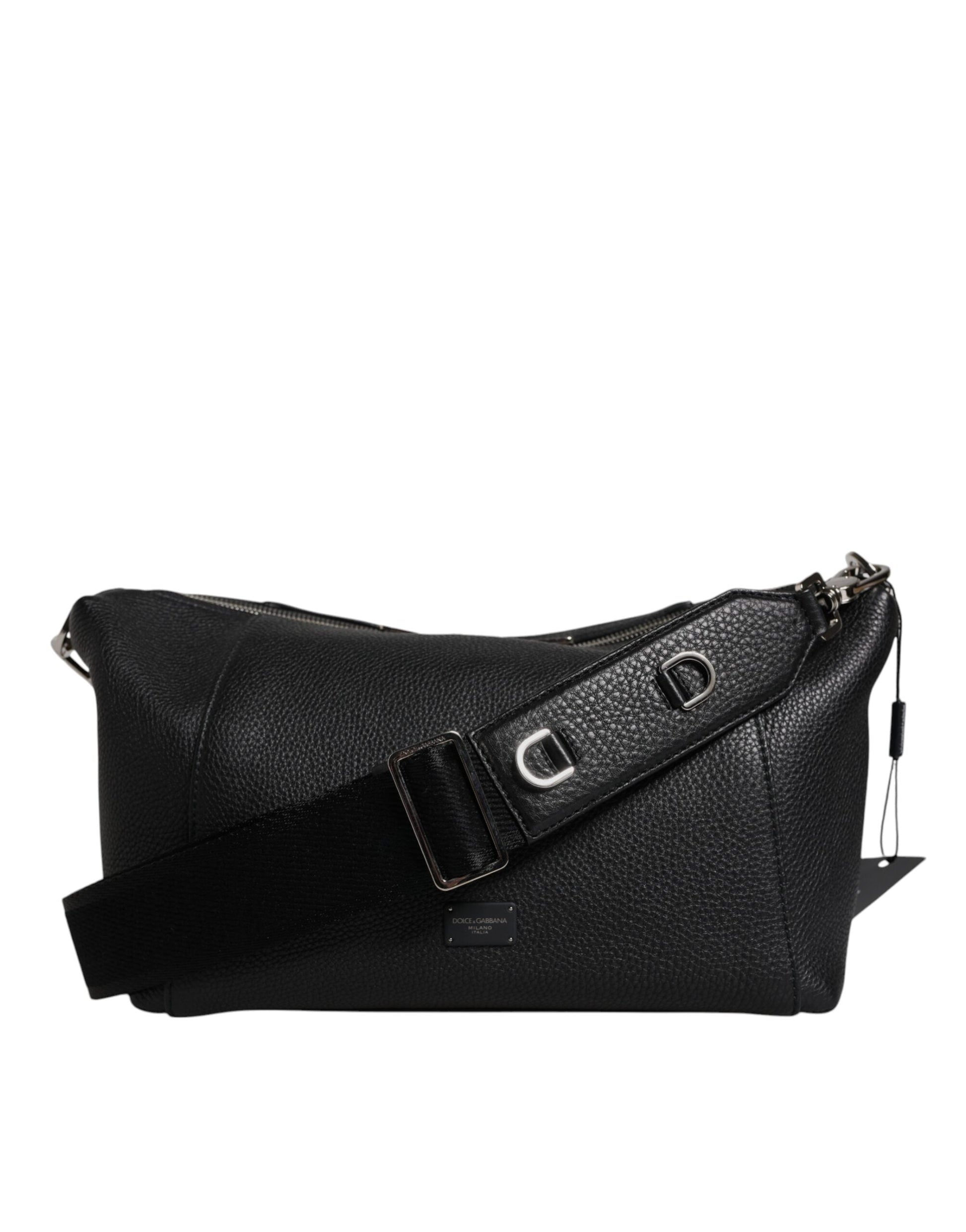 Black Leather Logo Plaque Shoulder Crossbody Bag