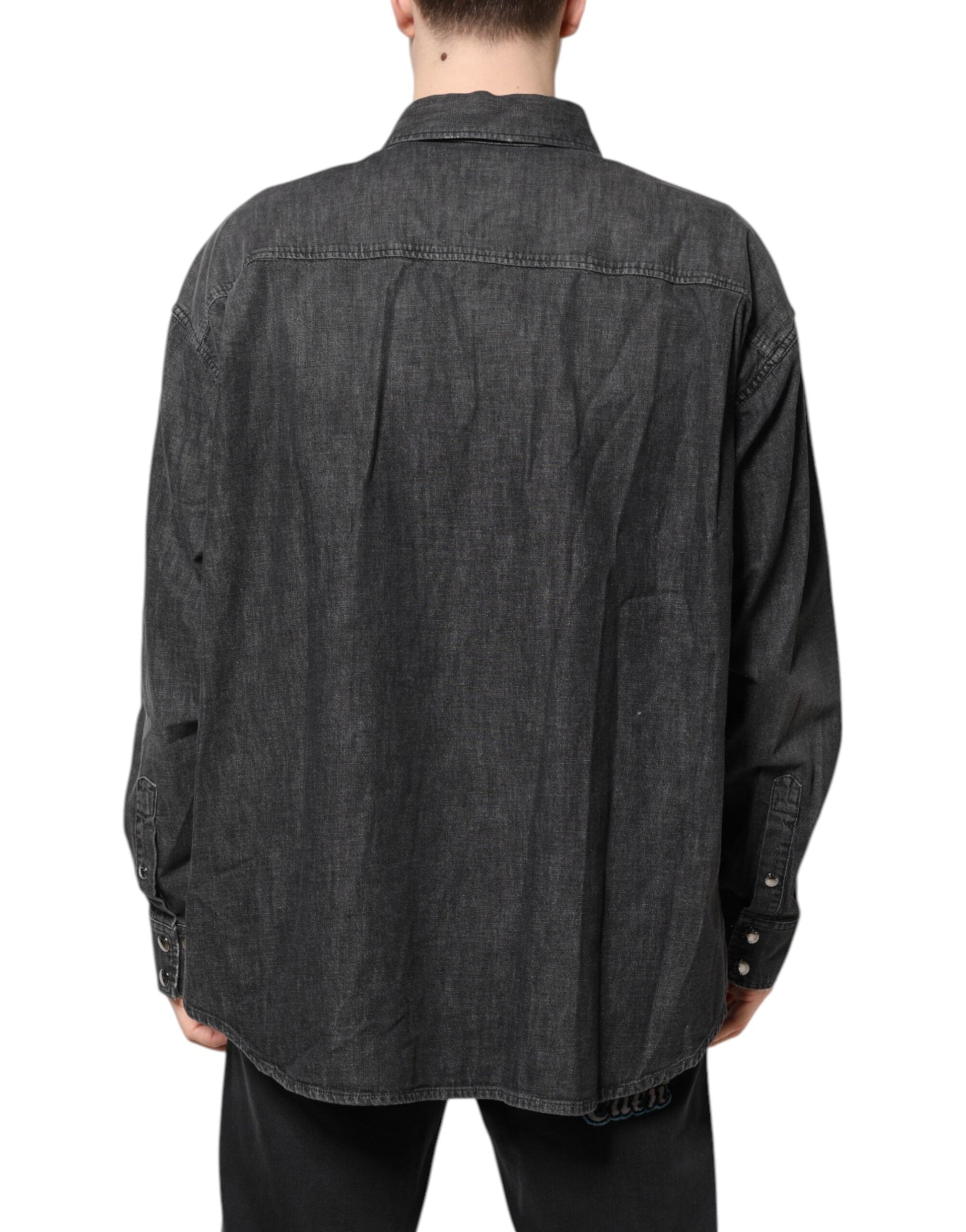 Gray Long Sleeves Button Down Denim Shirt