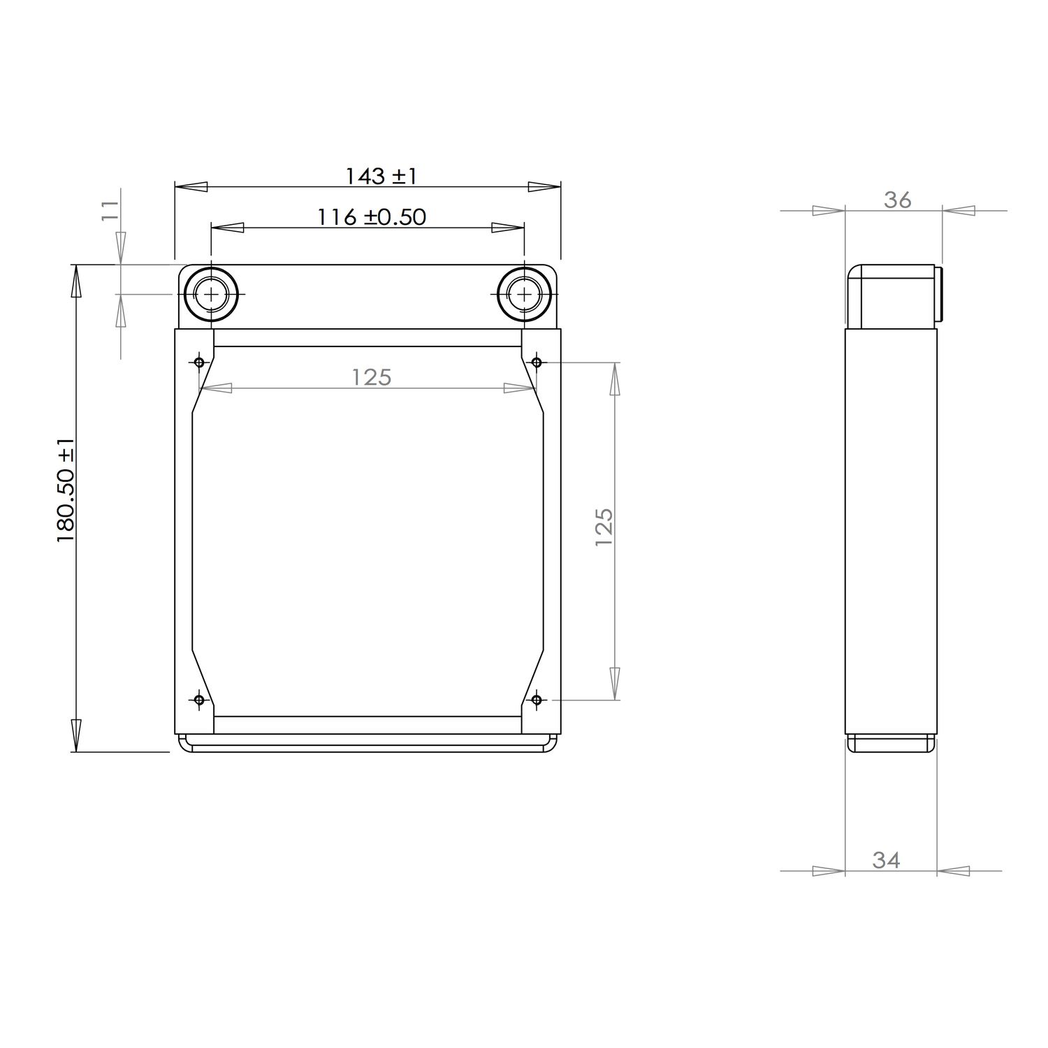 Dimensions: 143 x 36 x 180mm (WxDxH)>