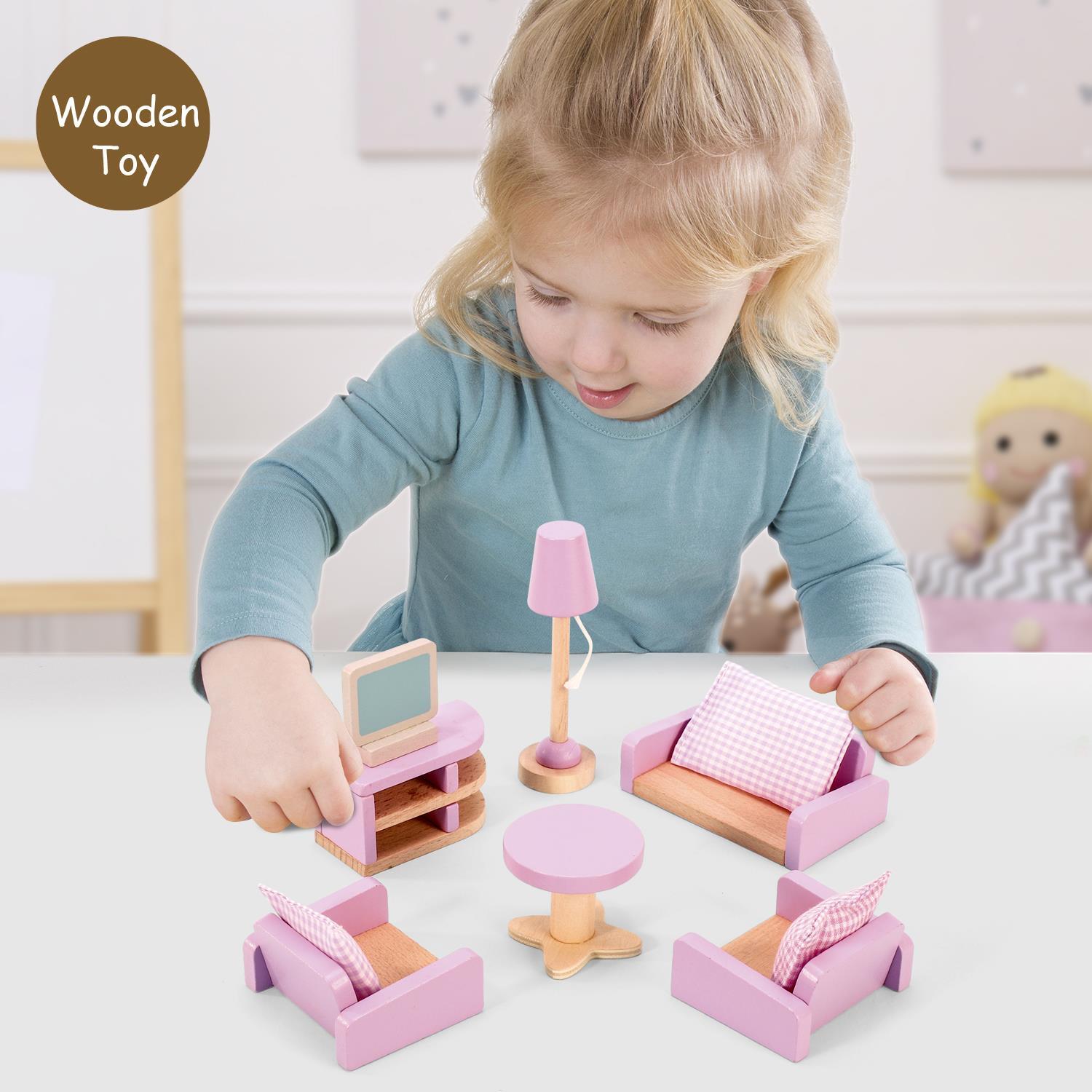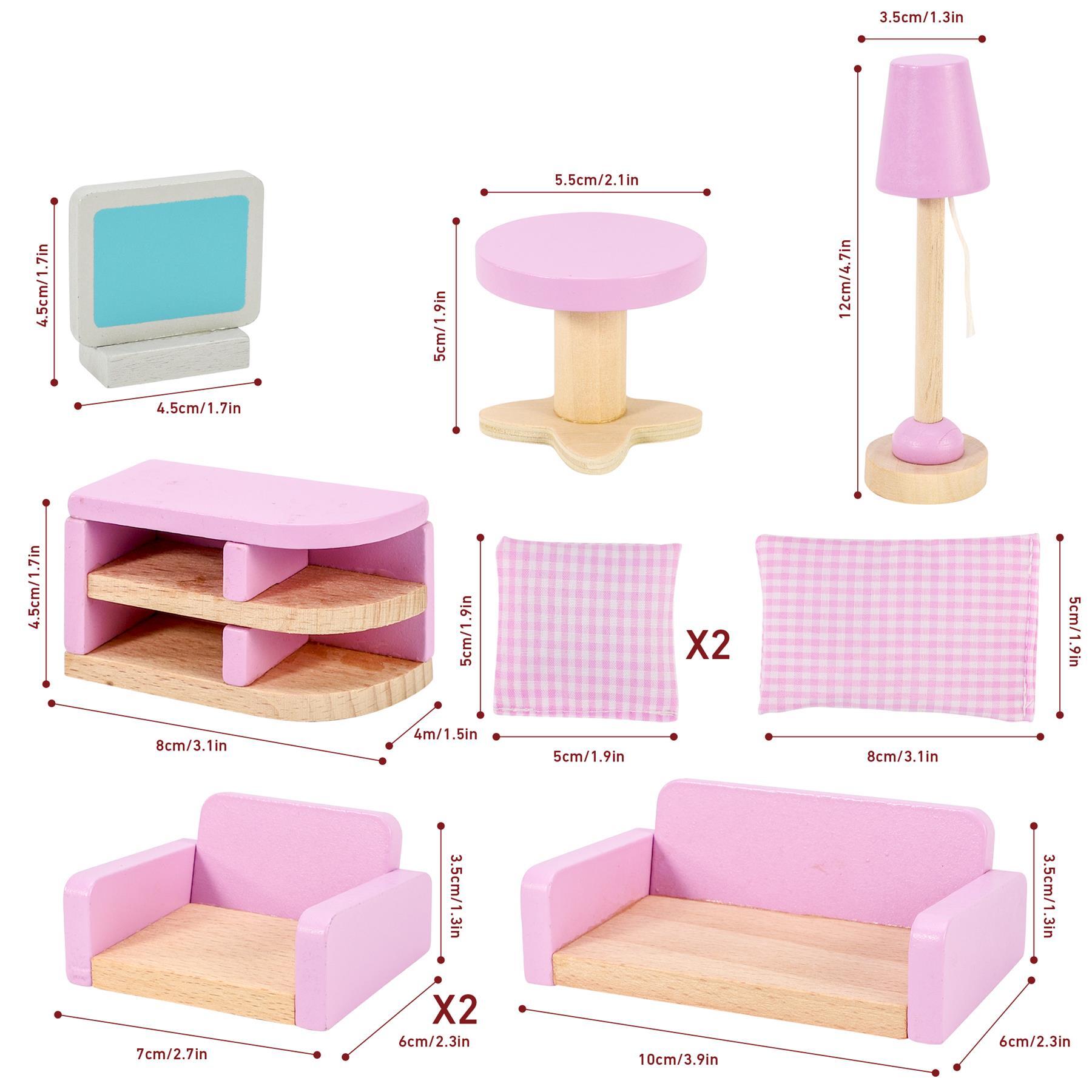 PERFECT DOLLHOUSE DECORATION: A wonderful addition to any little girl's dollhouse. A collection of beautifully crafted, detailed wooden doll furniture in a charming design and lovely colour. The individual set comprises realistic miniature furniture set that you will surely adore.