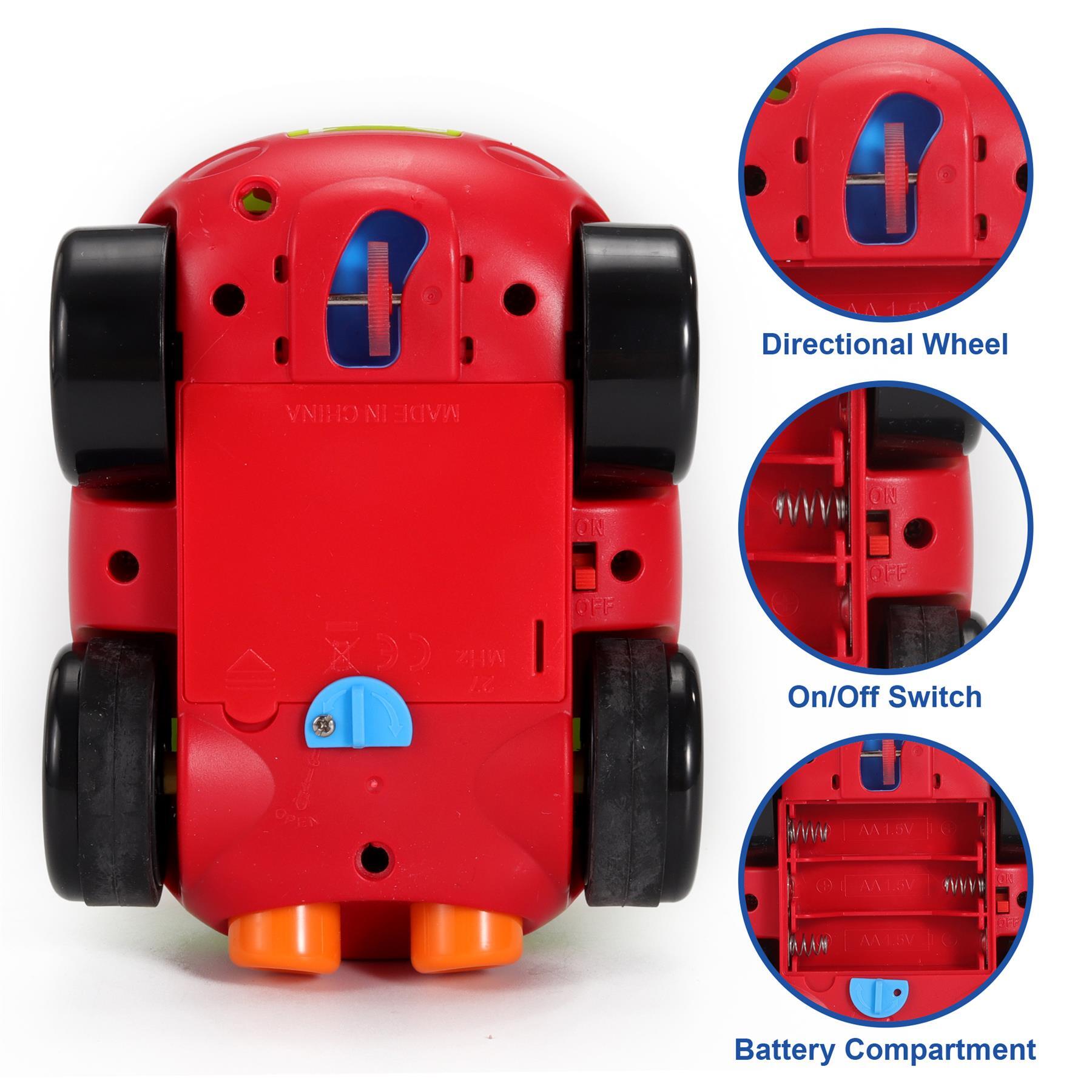 COOL LIGHTING AND MUSIC: Press the button on the body and the car, it will cause interesting sounds and bright lights to attract toddler's attention. Toddlers will exercise the development of sound discrimination ability and flexibility of fingers via playing this cartoon.
