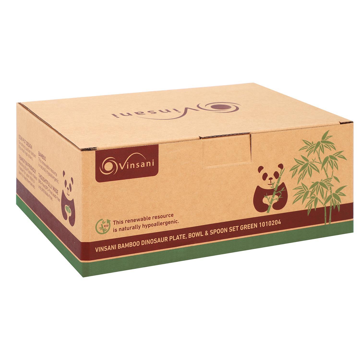 Bamboo Dinosaur Plate Bowl & Spoon Set Suction Bowl Stay-Put Design - GREEN